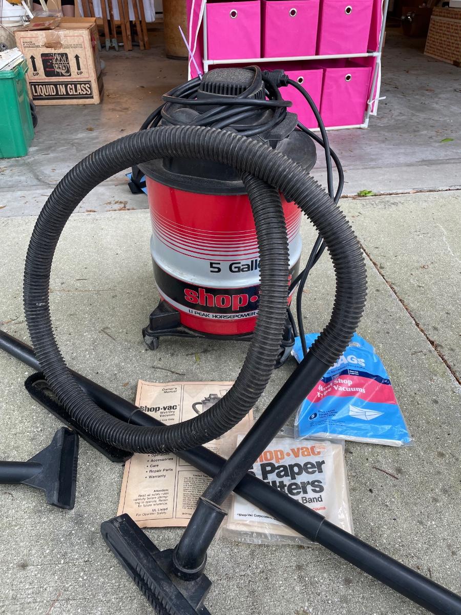 5 gallon Shop Vac includes attachments, filters and owner's manual