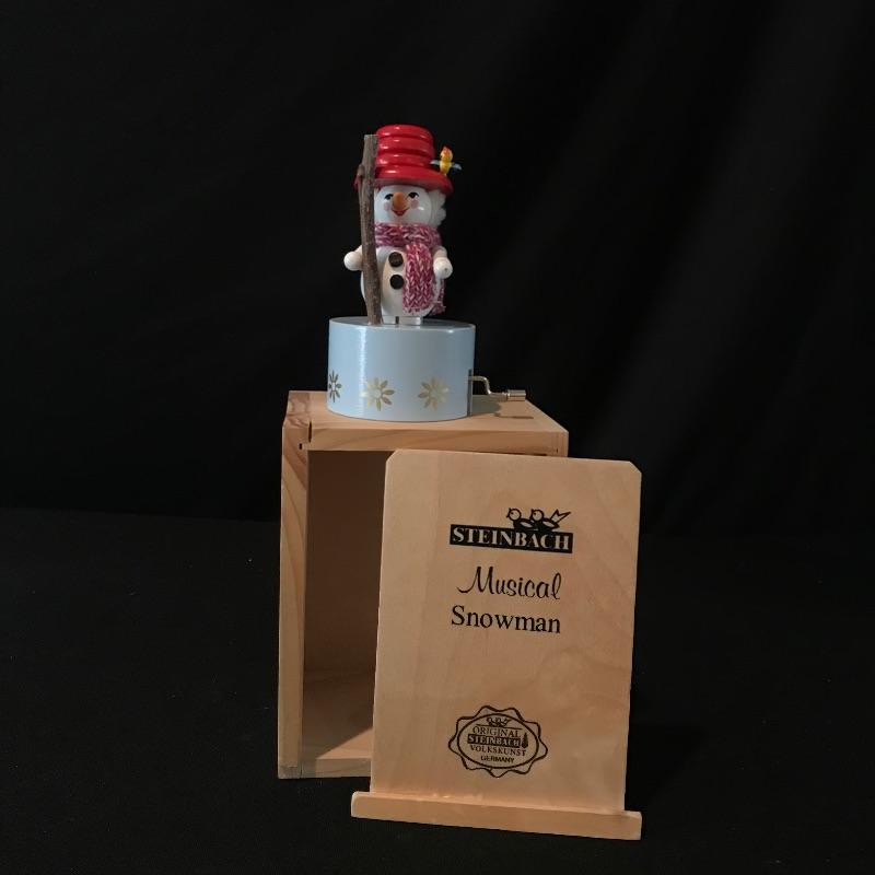 Lovely original Musical Snowman by Steinbach. Piece plays Jingles Bells and works well. Snowman stands 2.75” x 5” and is complete with Steinbach wood box. See photos. Shipping available.