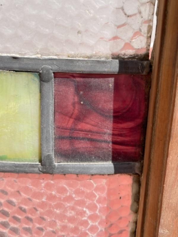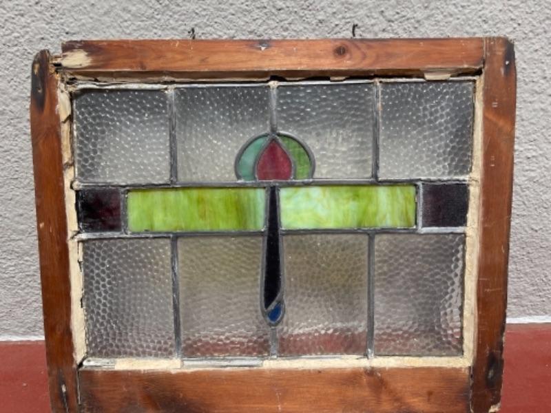 Lot 184G. Vintage framed stained glass window (26” x 21”)--$95