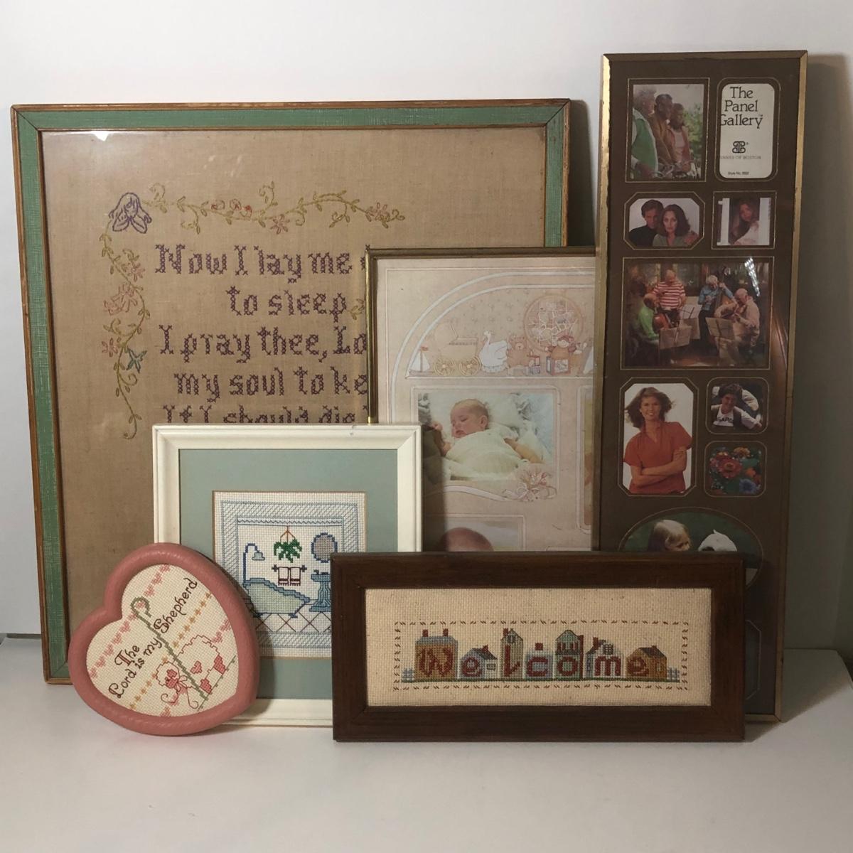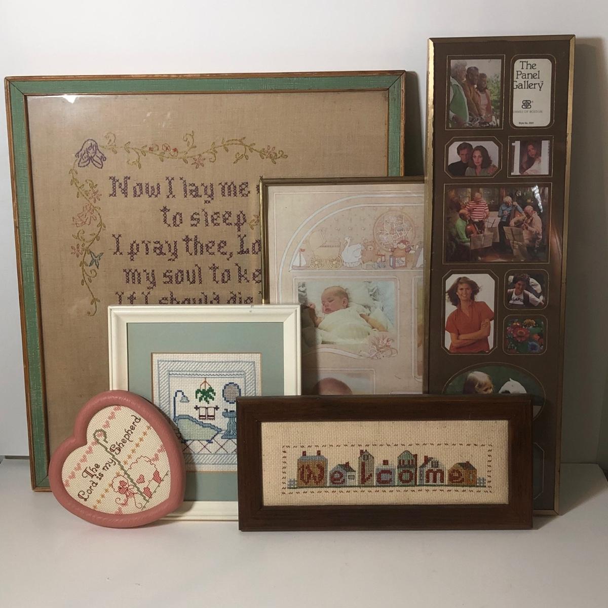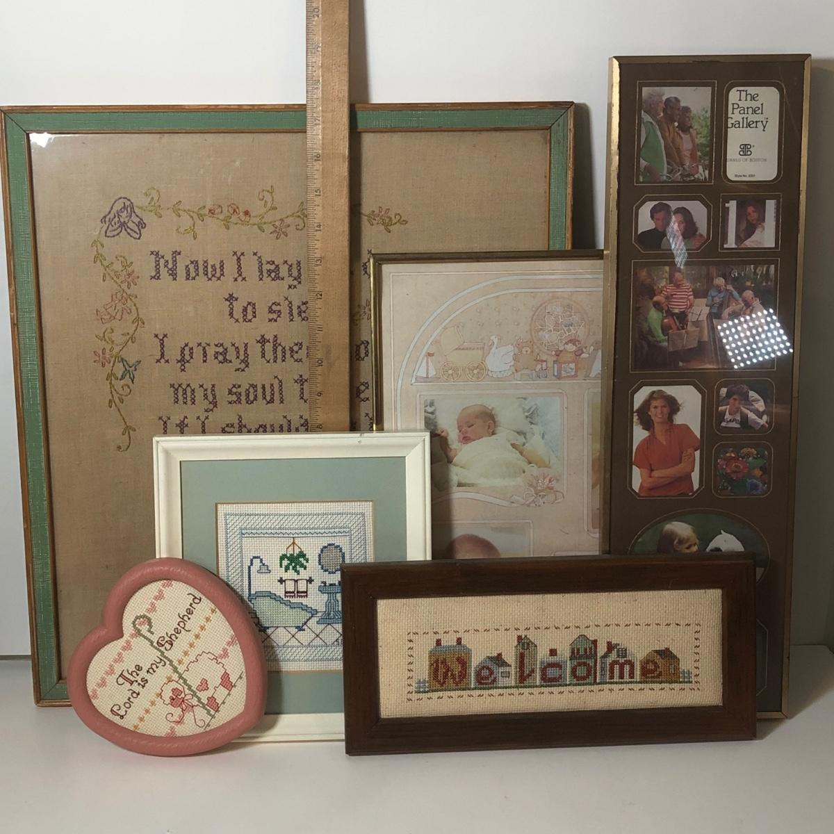 LOT 184L: Vintage Home Decor - Framed Cross Stitch & Photo Frames
