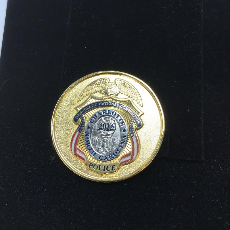 2012 Democratic national convention coin depicts Charlotte NC on front with stars and strips and on back has Police and DNC. Great for the collectors.