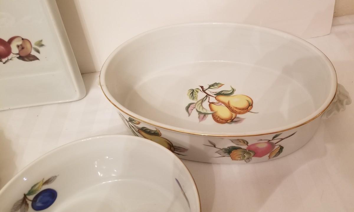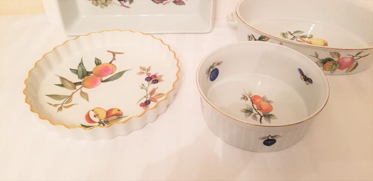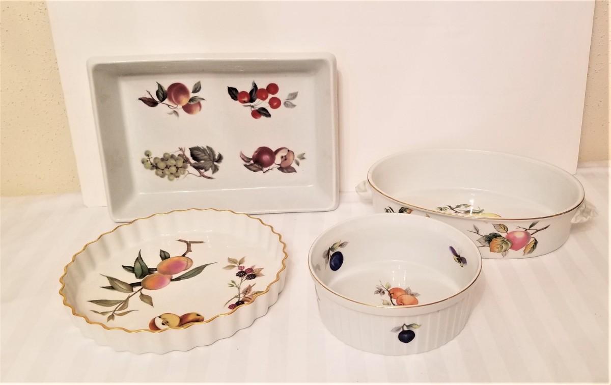 You get all you see here - Cordon Bleu Rectangular Casserole (12" x 8.75"), Royal Worcester Tart dish (10" across). 2 dishes with no maker noted. All in good condition.