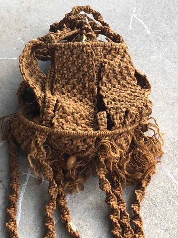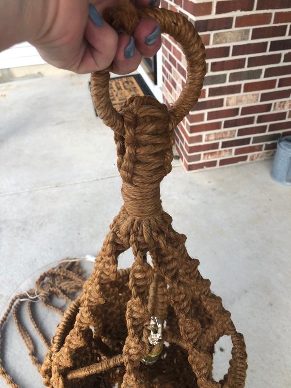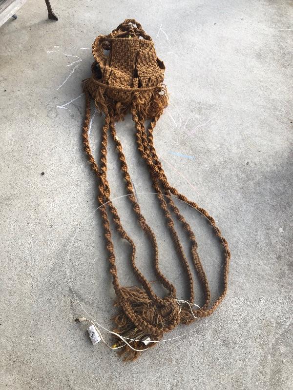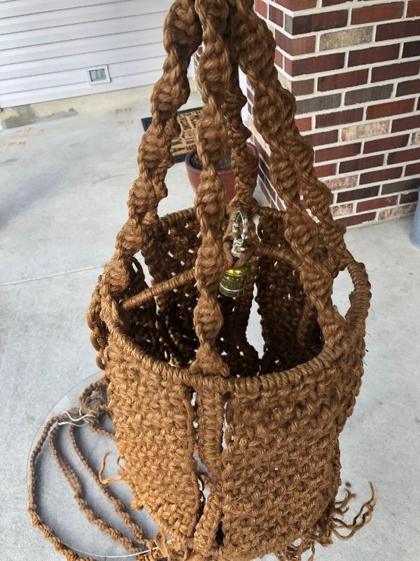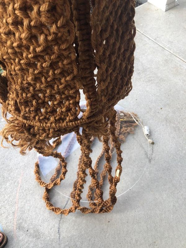 Vintage macrame plant hanger with light. Untested. Approx. 8' tall.