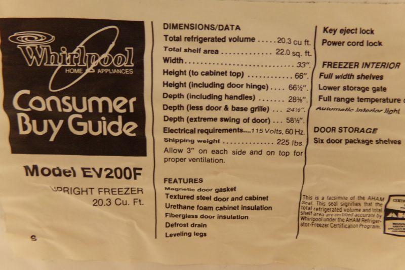 20.3 CU FT TOTAL SHELF AREA 22.0 SQ FT