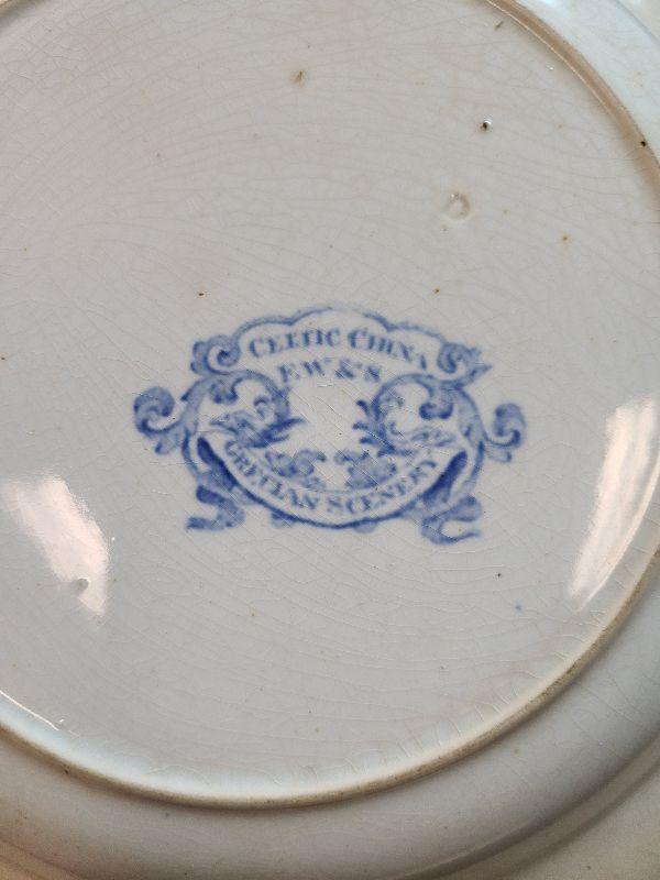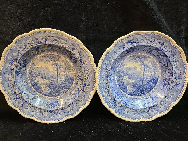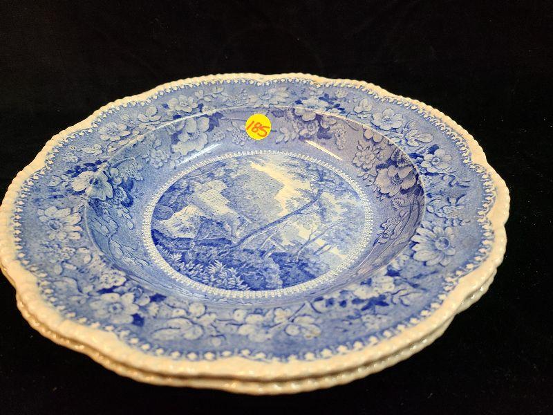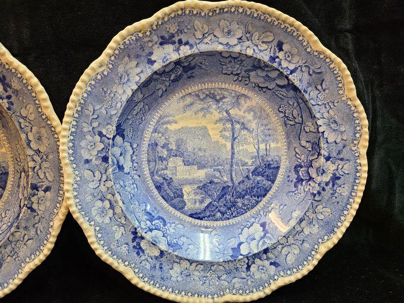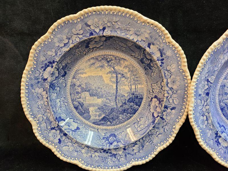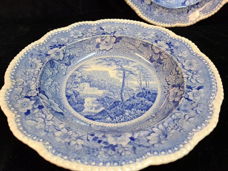 Lot 185: Antique EW & S Celtic China Grecian Scenery Blue and Cream Bowls
