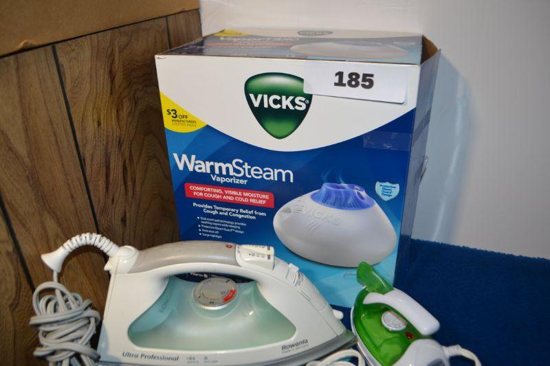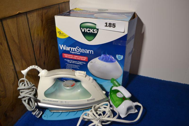 LOT 185 VICK VAPORIZER AND TWO IRONS