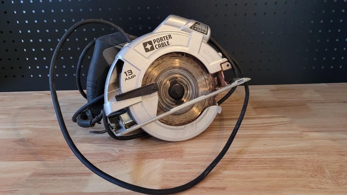 Lot 185: PORTER CABLE 7 1/4" 13 AMP Hand Saw WORKS