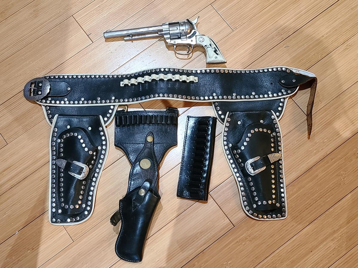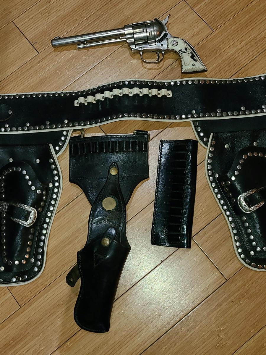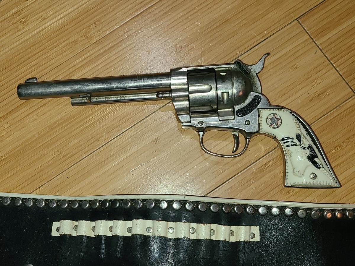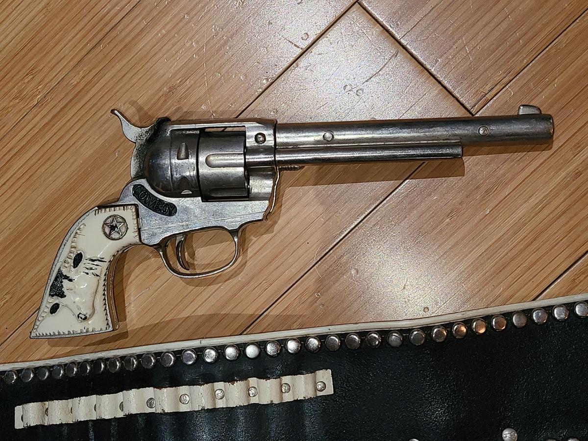 Lot 185LR: Vintage Toy Gun, Bucheimer Leather/Brass Holster, Prop Gun and More