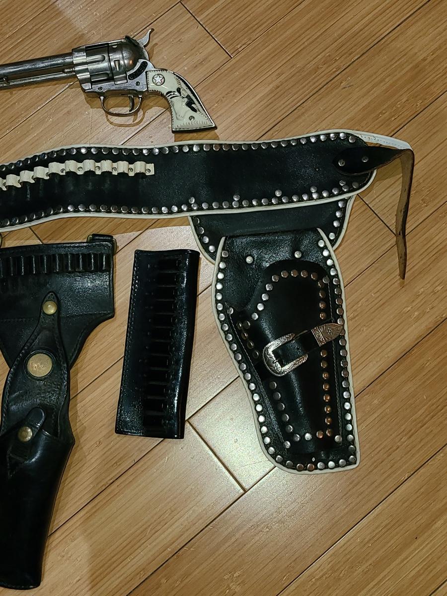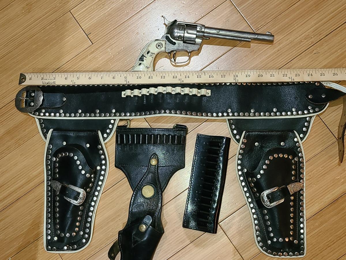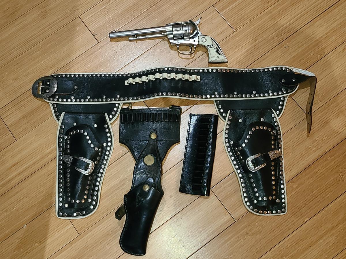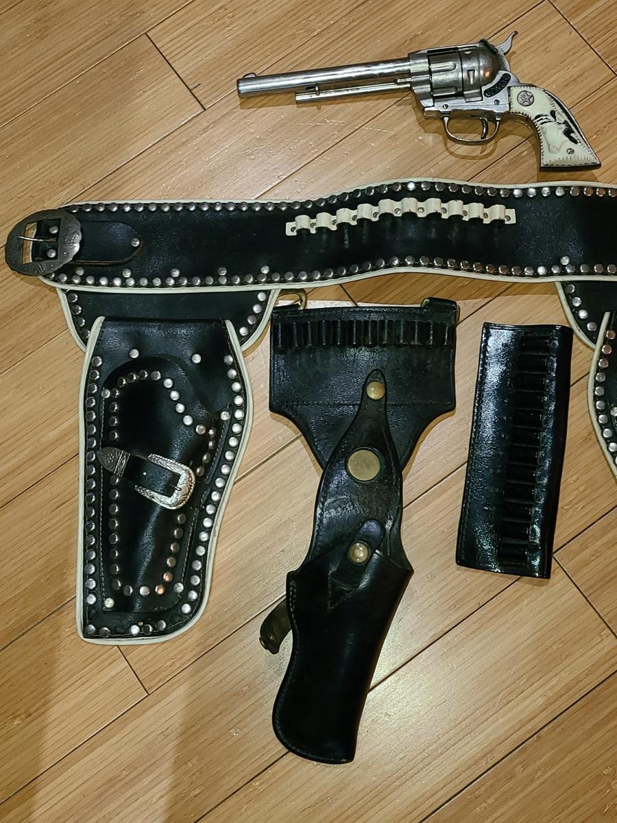 Lot 185LR: Vintage Toy Gun, Bucheimer Leather/Brass Holster, Prop Gun and More