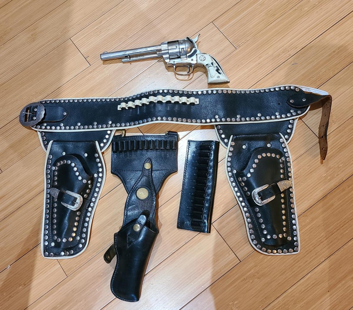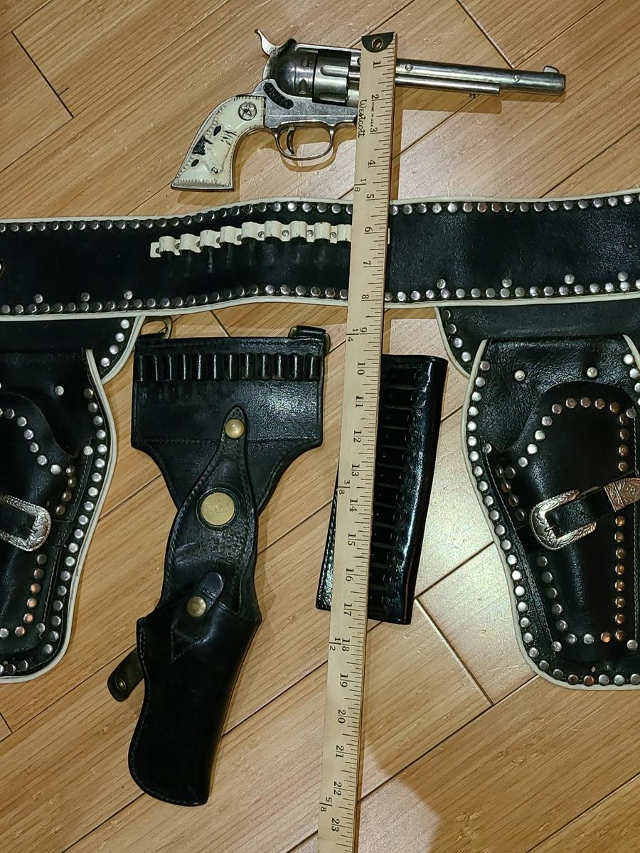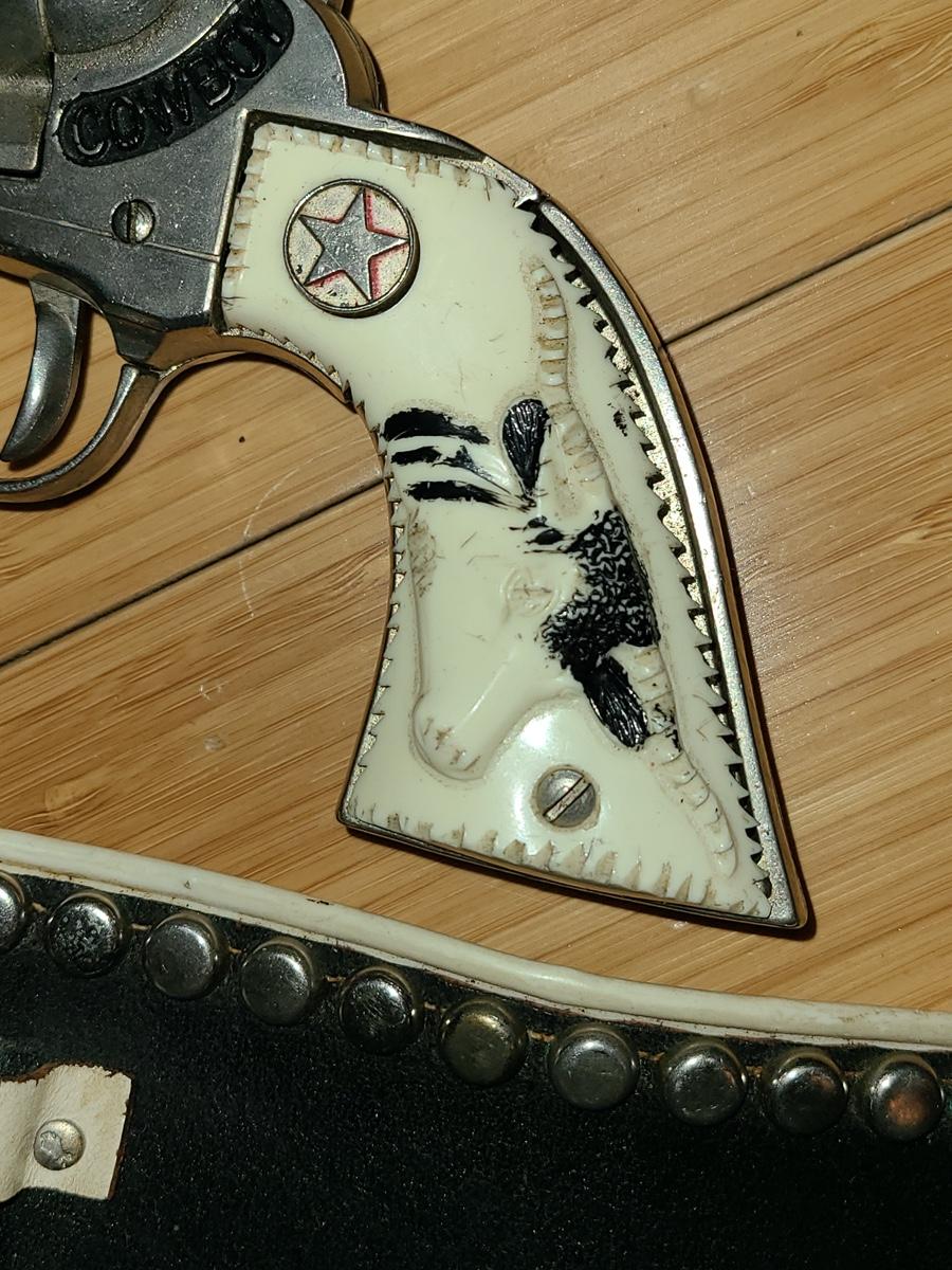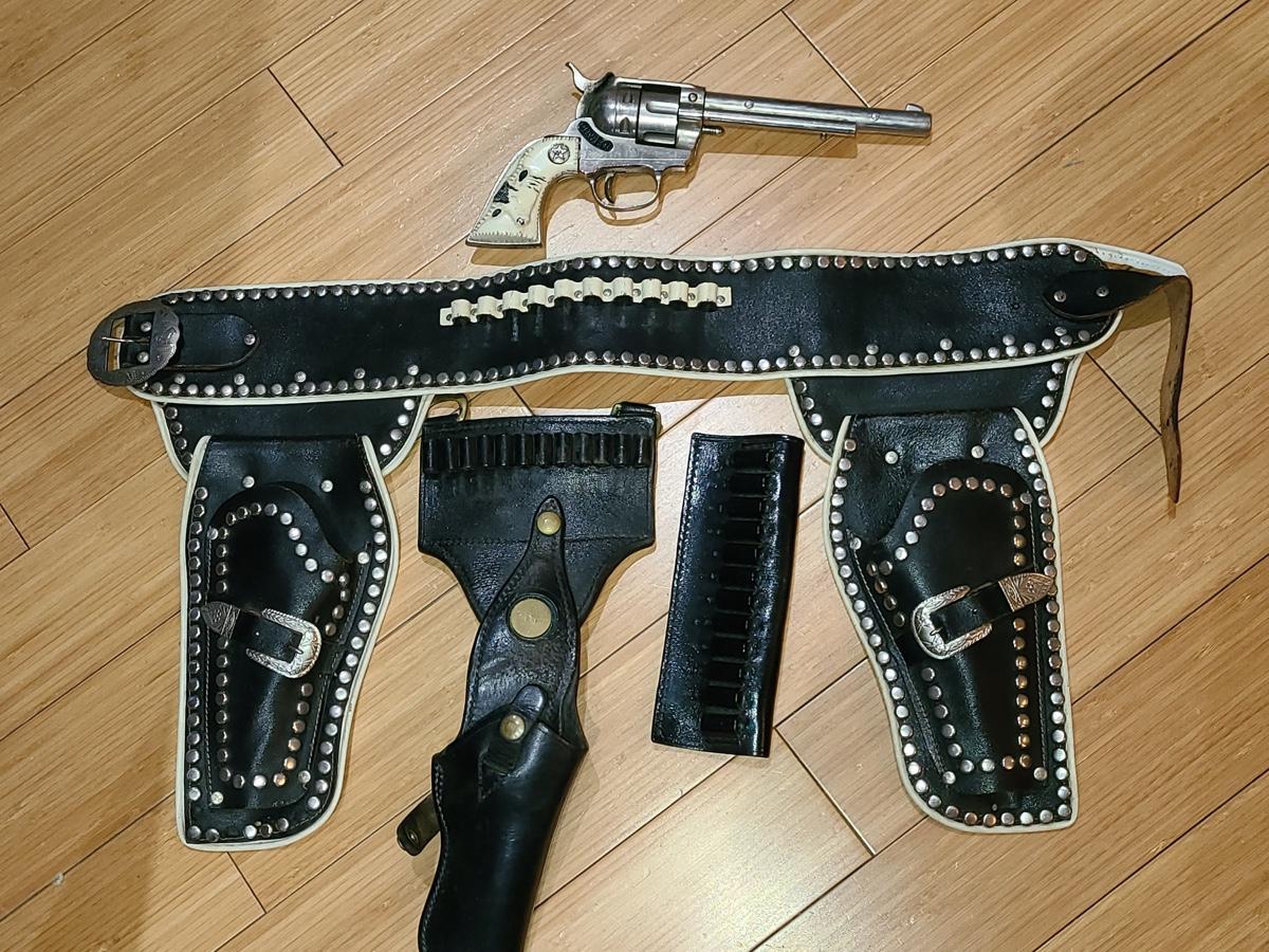 Lot 185LR: Vintage Toy Gun, Bucheimer Leather/Brass Holster, Prop Gun and More
