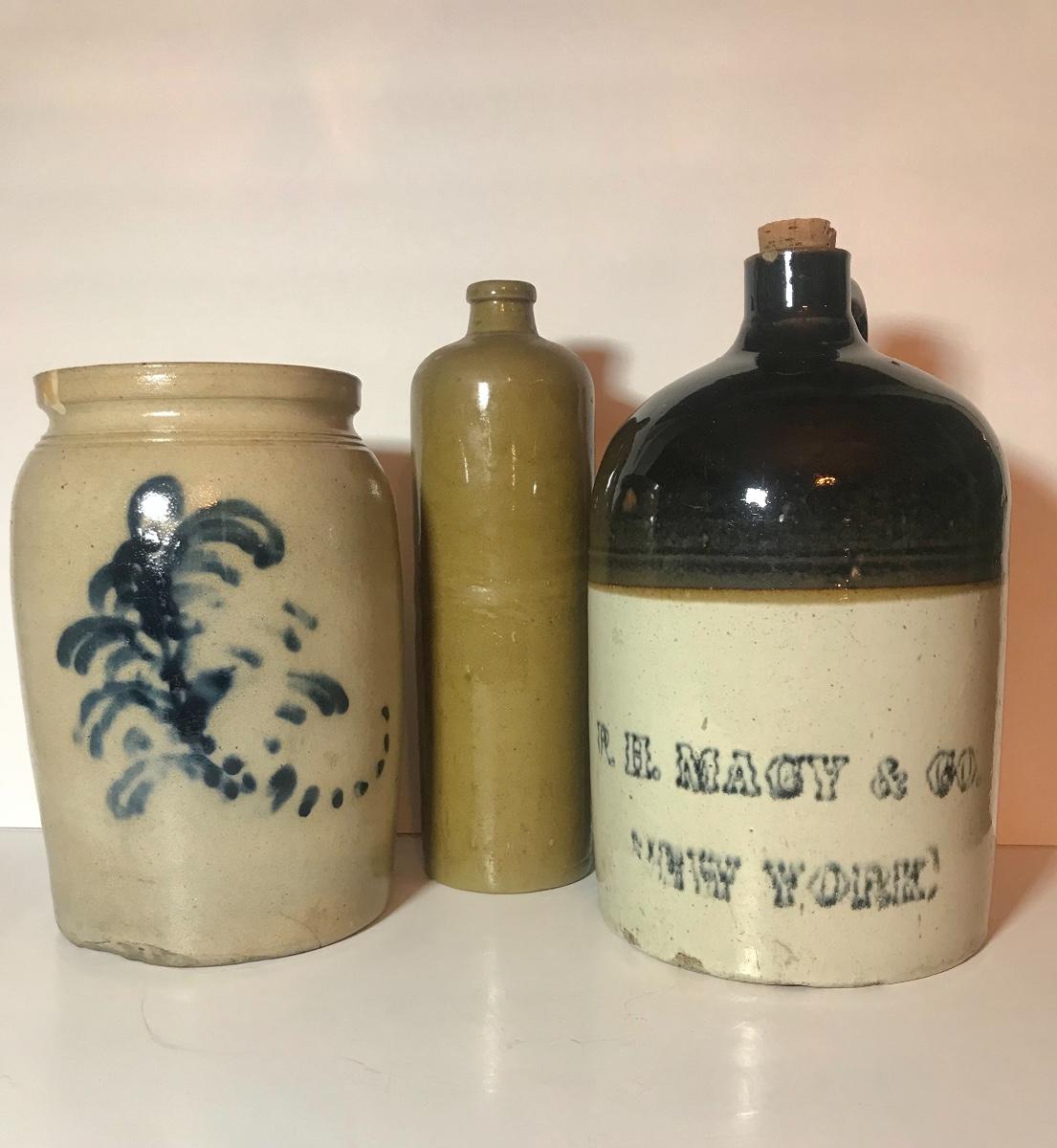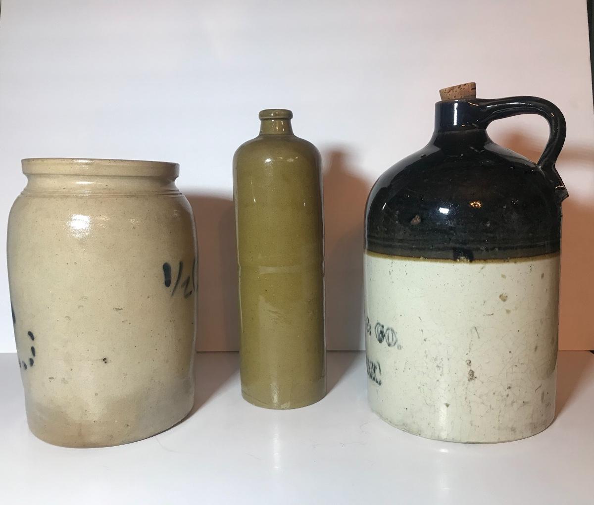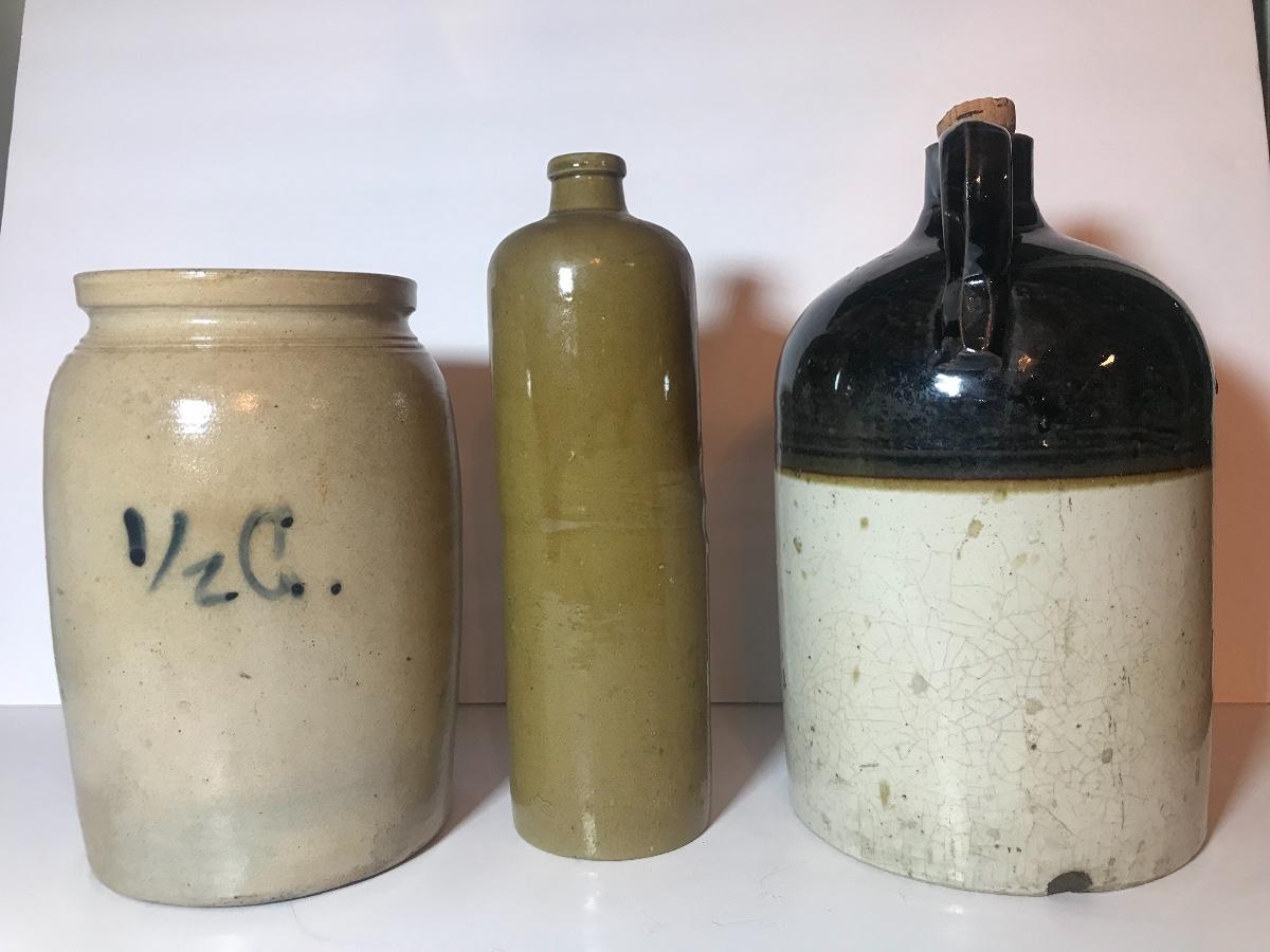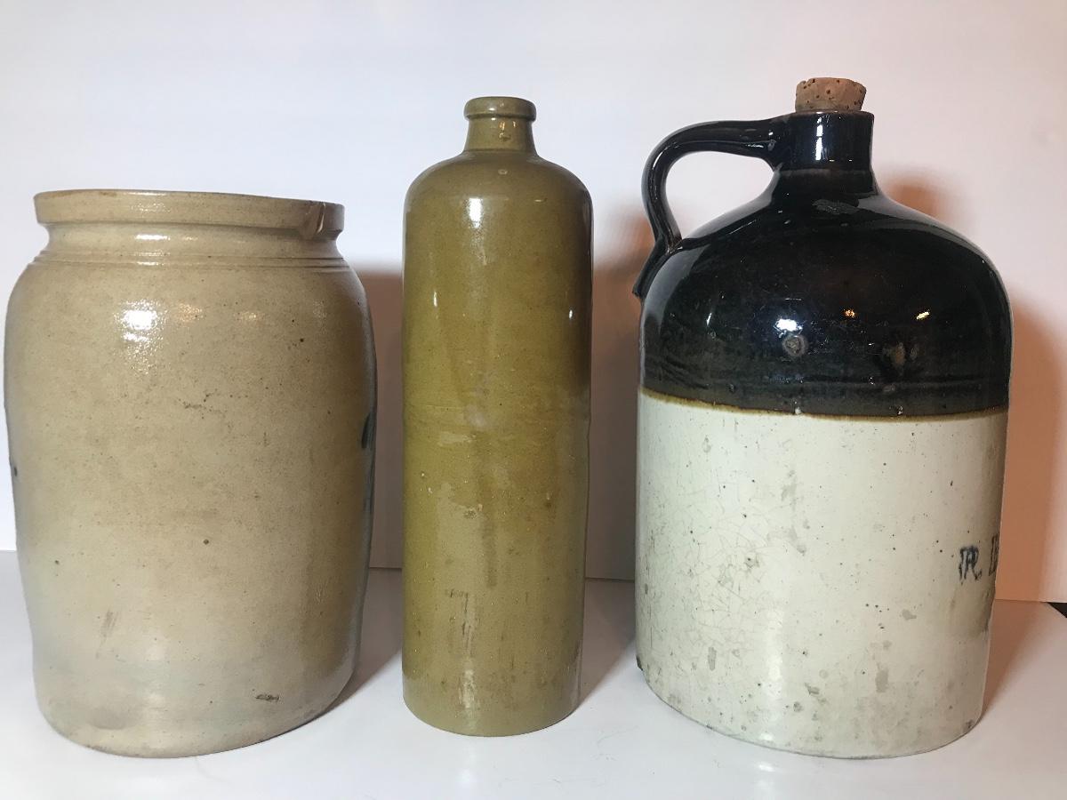 Lot 185: Antique Stoneware Crock, Bottle, and Jug