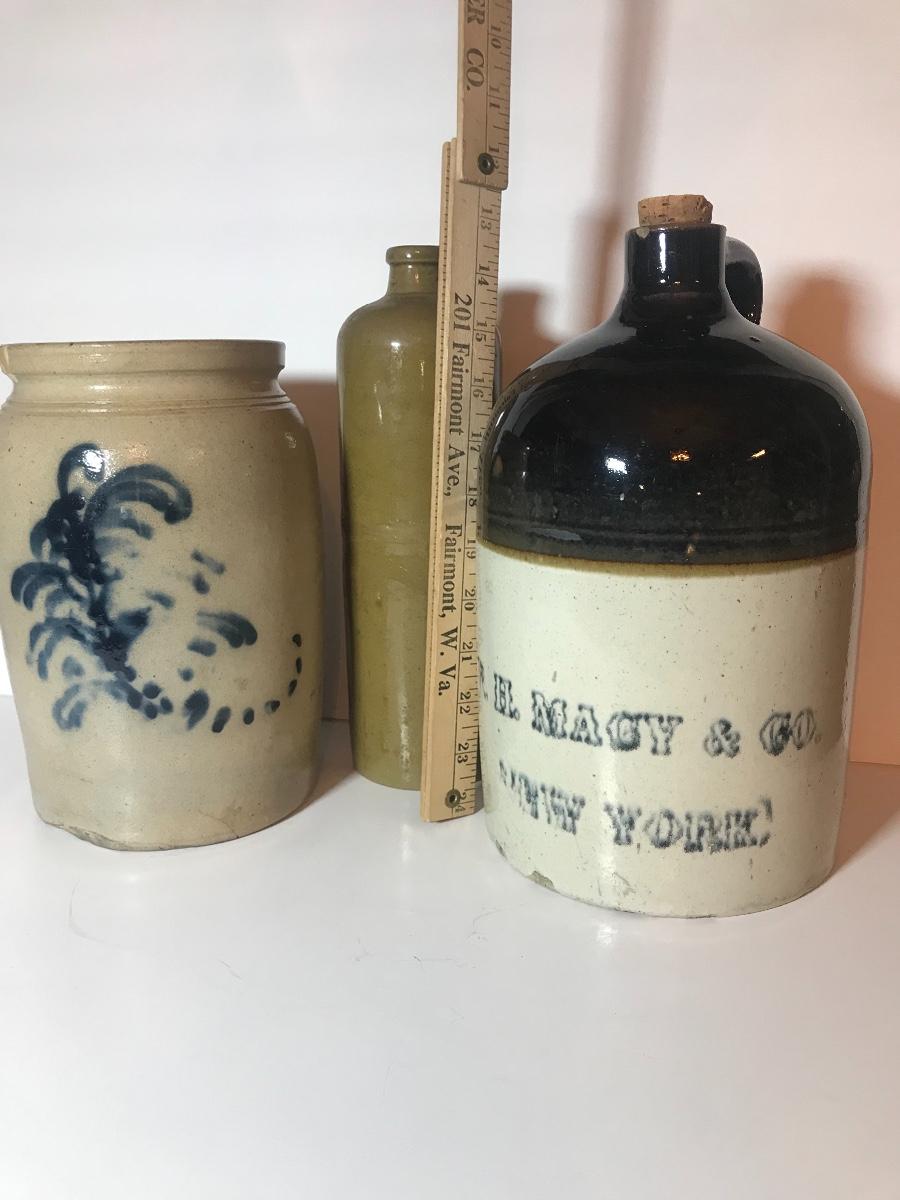 Salt Glaze crock with cobalt embellishments, this does have some imperfections due to age and use (bottom has a chip). R. H. Macy & Company New York advertising jug. This also has small imperfections such as a nick in lip of jug and the bottom has a chip out of. Please see all pictures as they are the best representation of the items. The pictures show condition, measurements if taken, and what is included in the lot. Due to the large amount that we photograph and the time frame, we are not always able to take measurements. All items unless noted, are pre-owned and have been used. If you purchased furniture, you must bring help. We do not allow one person to carry large furniture out on their own. Bring help, tools and a truck for the safety of our client’s homes, and your personal safety. Company policy. Thank you. There are a lot of collectibles and small items at this sale, please bring boxes and packing materials.