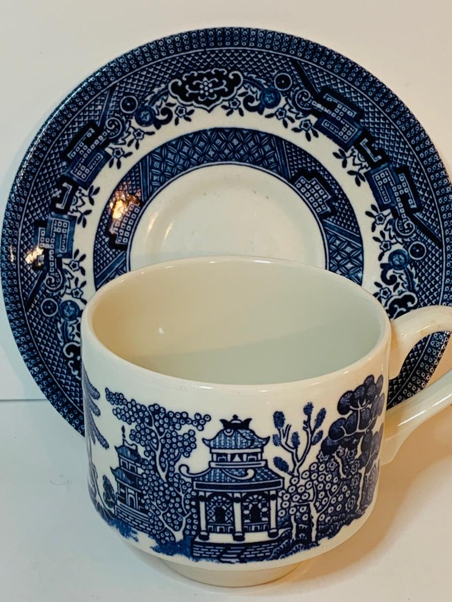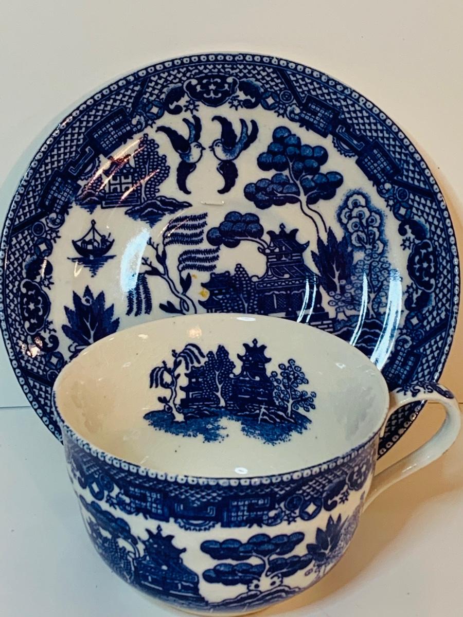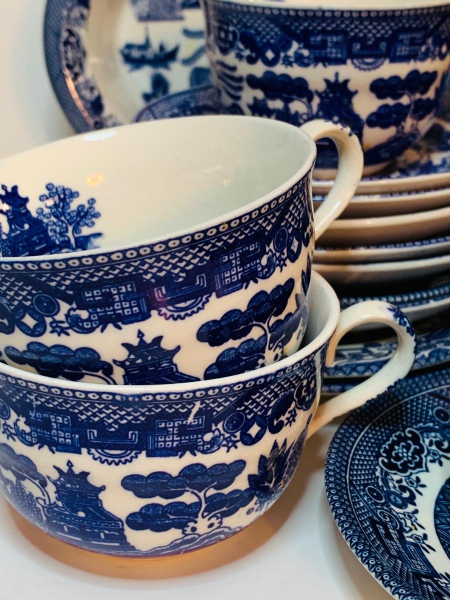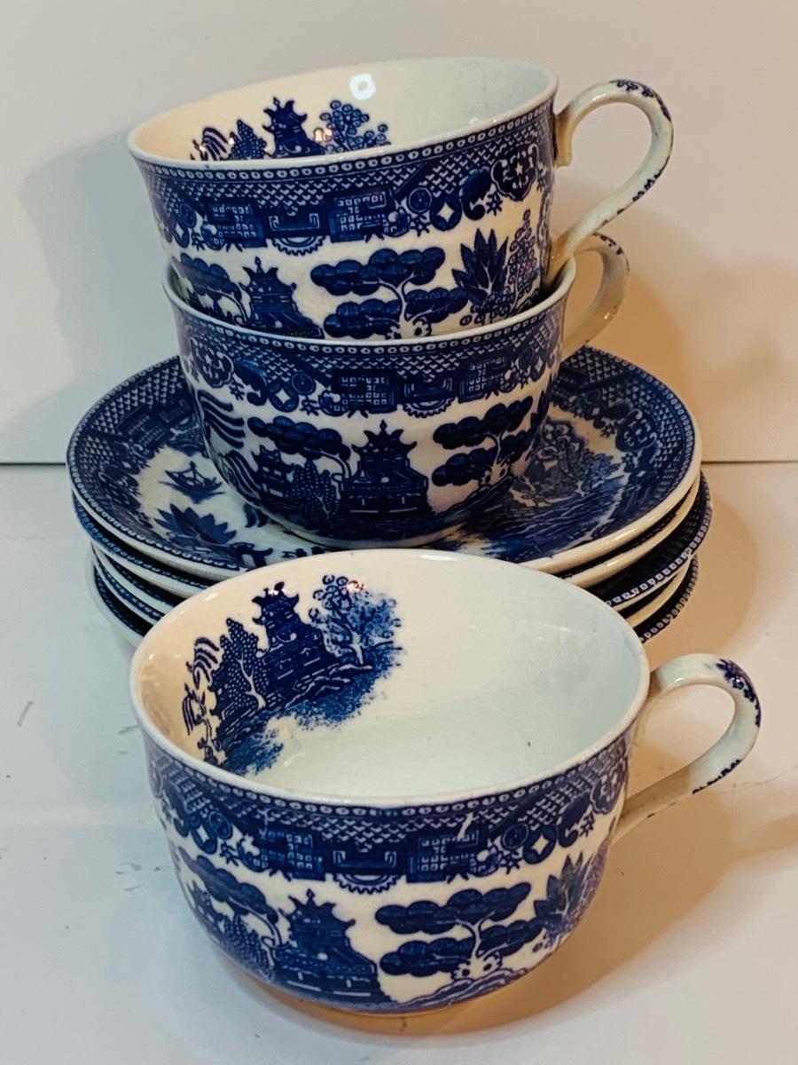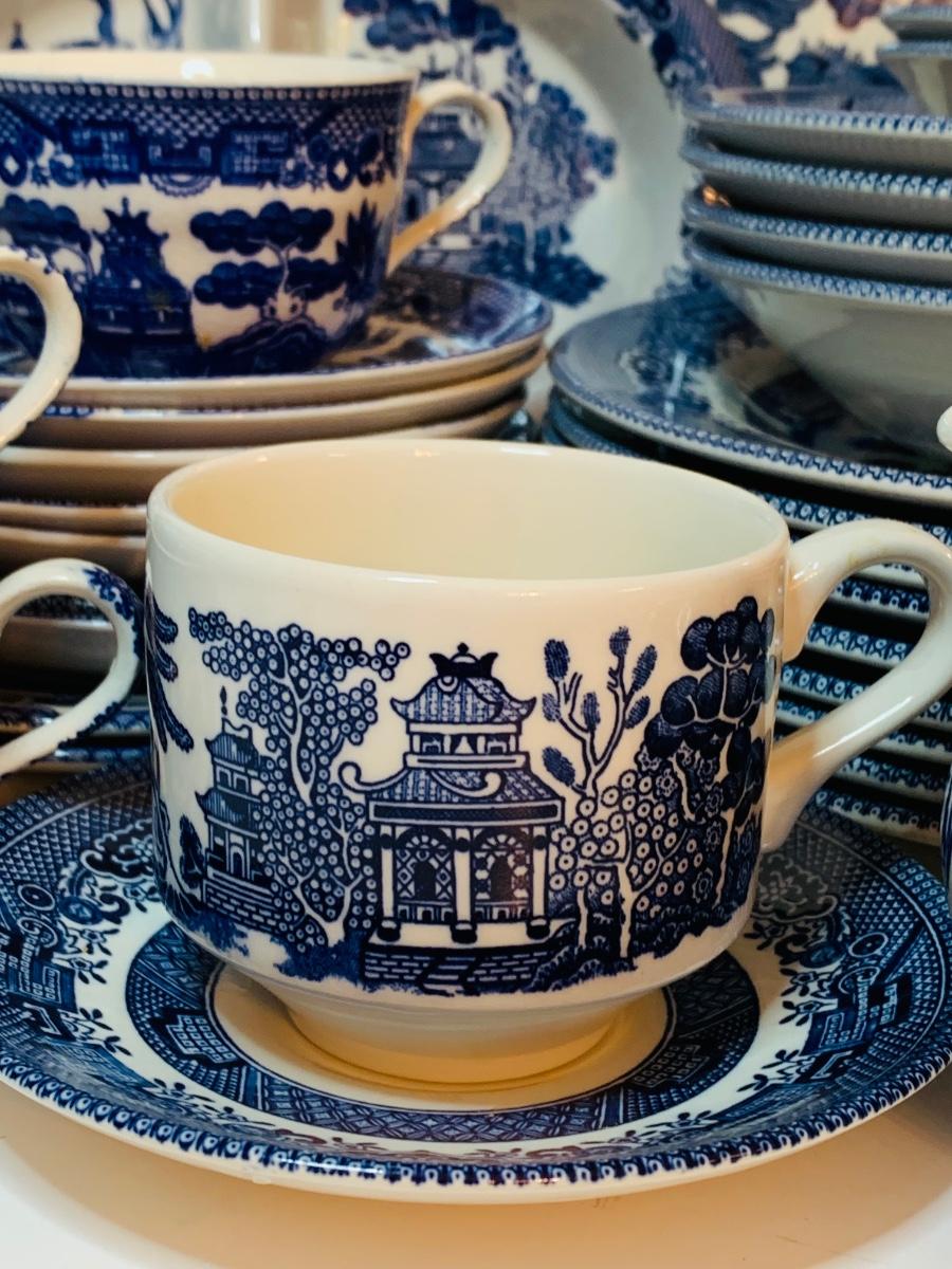 Lot 185: Vintage Mixed lot of Blue Willow Serving Pieces (Japan, and Churchill England)