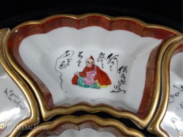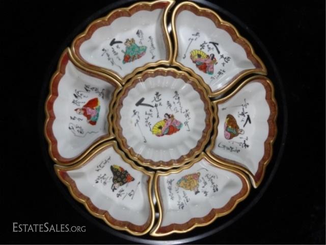 LOT 185: 7 PC VINTAGE JAPANESE FUJITA KUTANI LAZY SUSAN, APPROX 4" X 13"