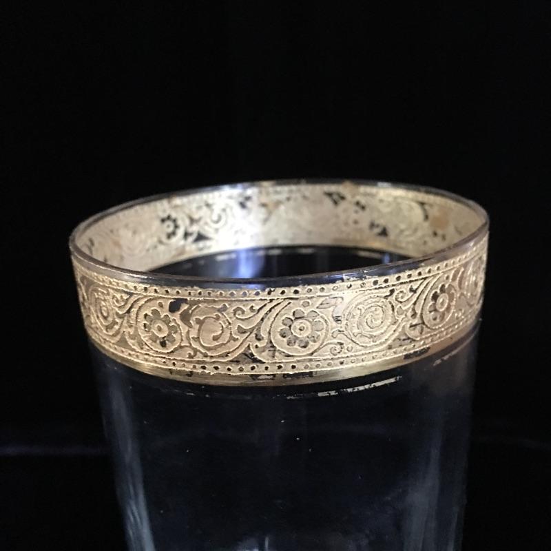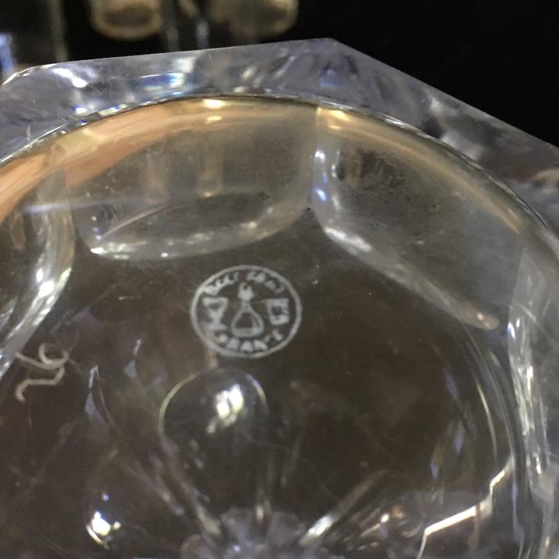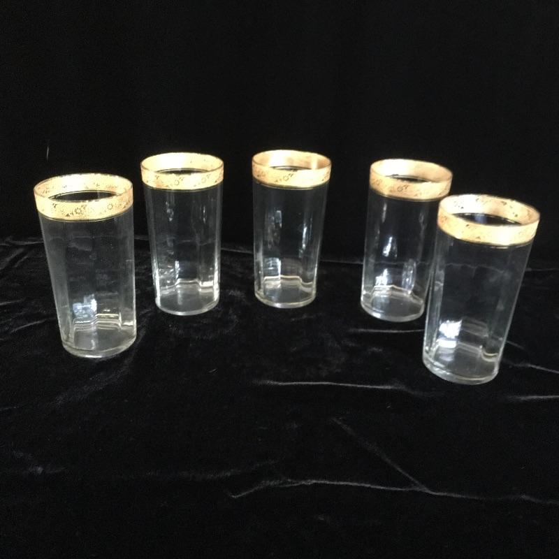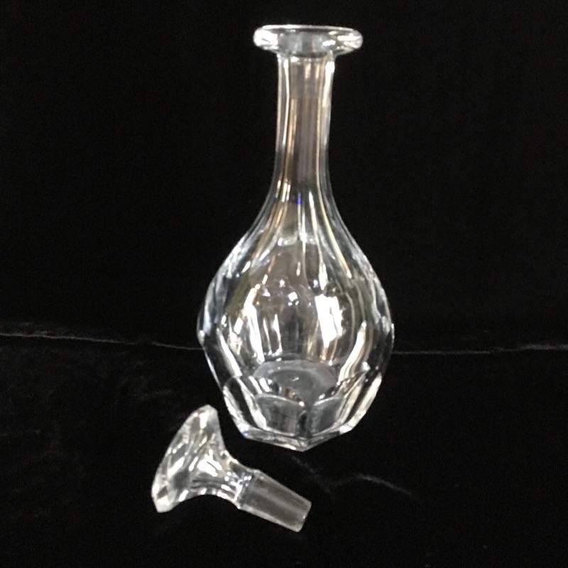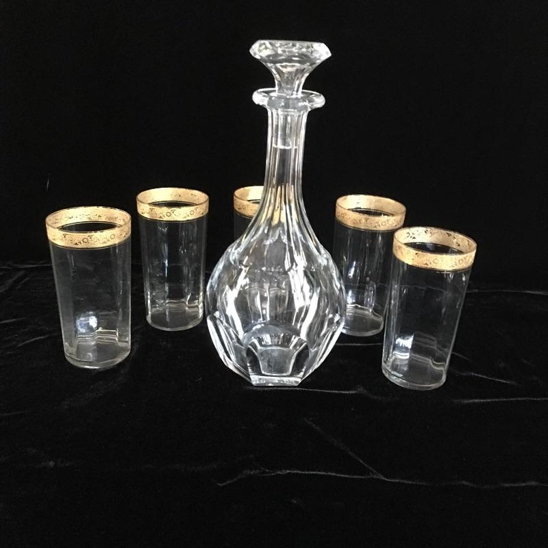 Beautiful Baccarat decanter with five gold rimmed glasses. Don’t miss out on this beautiful decanter and glasses. Decanter Measures 12” tall