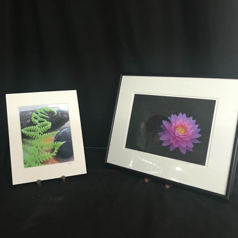 Two photographic prints of nature. One is matted and taken at the South Toe River in 2010 by Totsie Marine and it measures 14” x11”. The other is matted and framed and signed by Susanna MacKenzie Euston and measures 16” x20”. Shipping available.