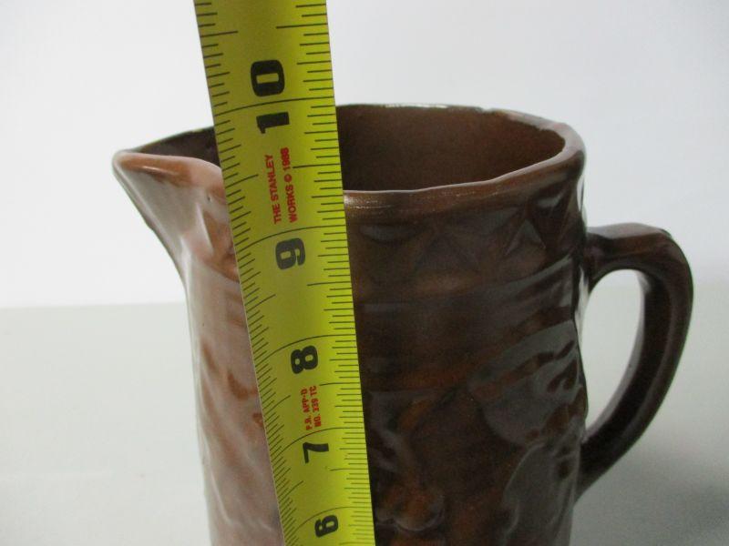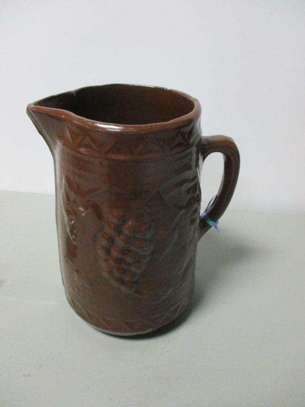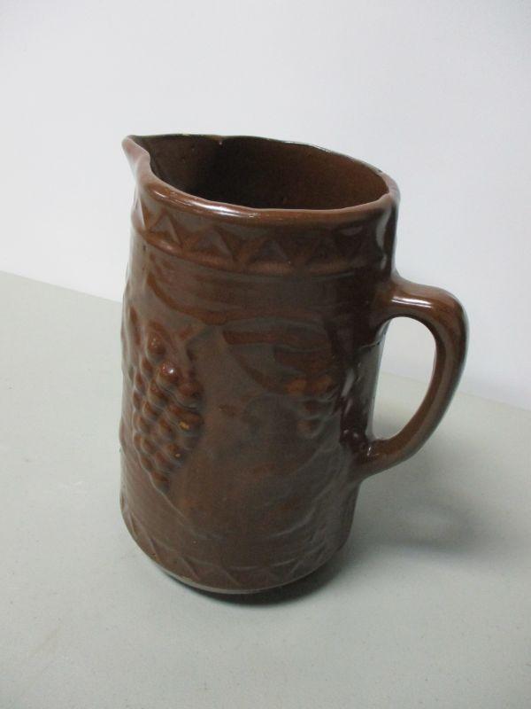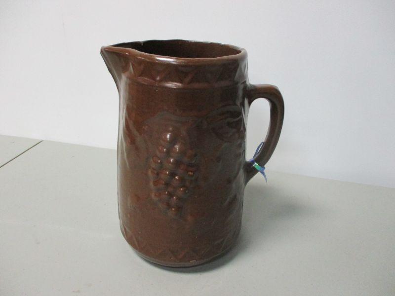 Lot 185 - Brown Grape Design Pottery Pitcher 9 1/2"