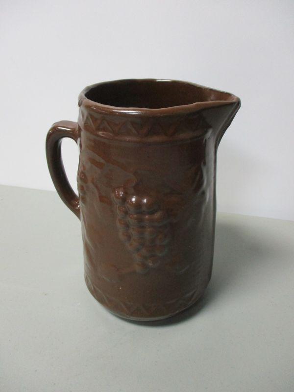 Brown Grape Design Pottery Pitcher 9 1/2"