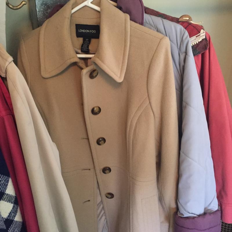 Collection of coats including London Fog, Perry Ellis and more! Most are size small/petit. No shipping.