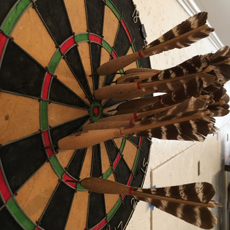 This Dart Board was made in England, home to this fun and iconic game. Get your friends together and play some games, book included here as well as vintage darts., see images.