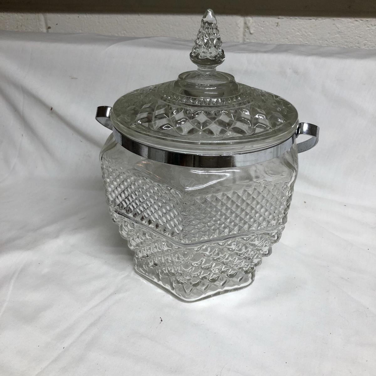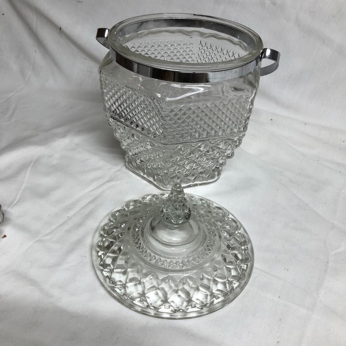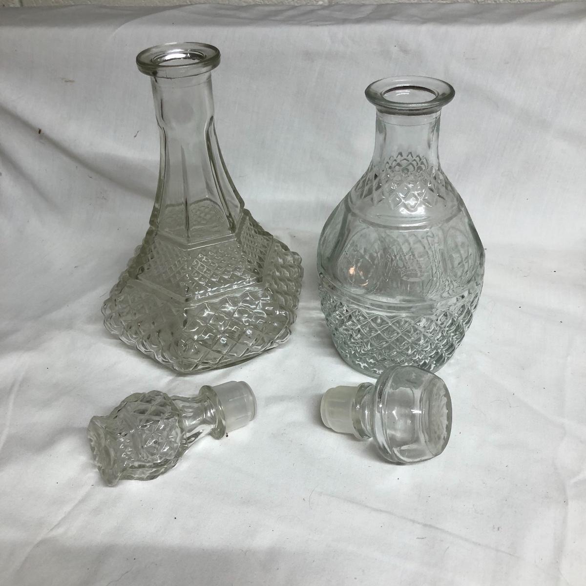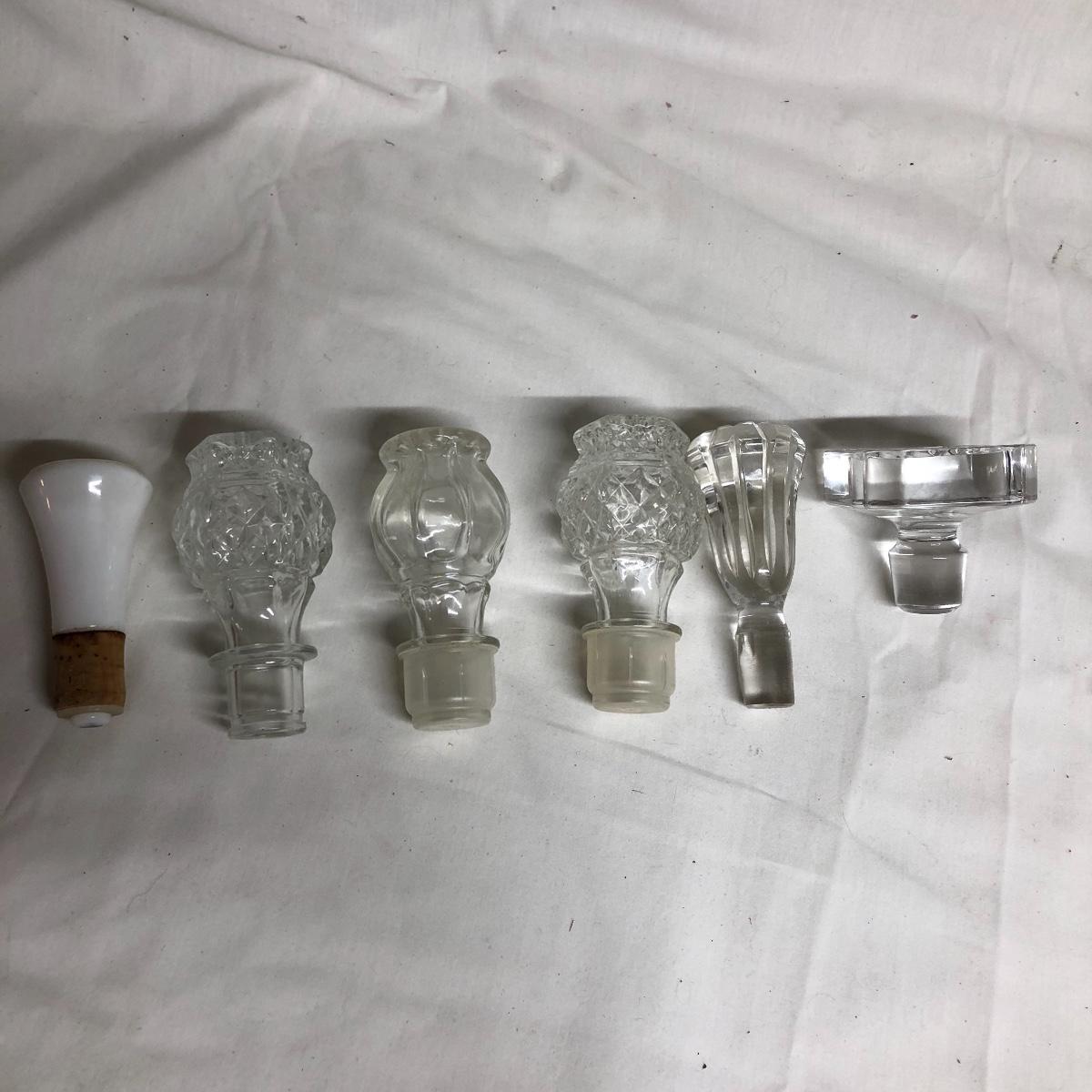 Be ready for your next get together with this array of decanters and more. Lot includes two decanters, ice bucket with tongs, five champagne glasses, six bottle stoppers and a triple scale beer and wine hydrometer. Ice bucket measures 8”D x 11” tall.