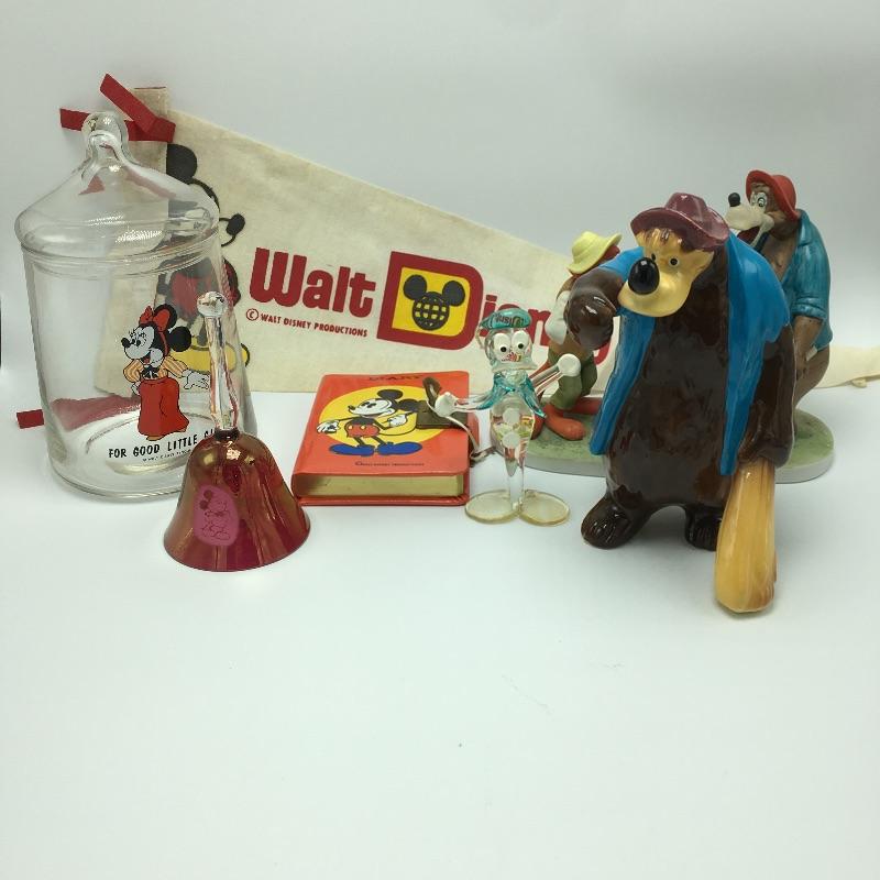 Disney collection includes bell, diary, Glass jar with lid, three Disney characters and one bear figurine. A great collection for all you Disney fans out there. Largest piece measures 3.25” x 7.75” x 6.25”.
