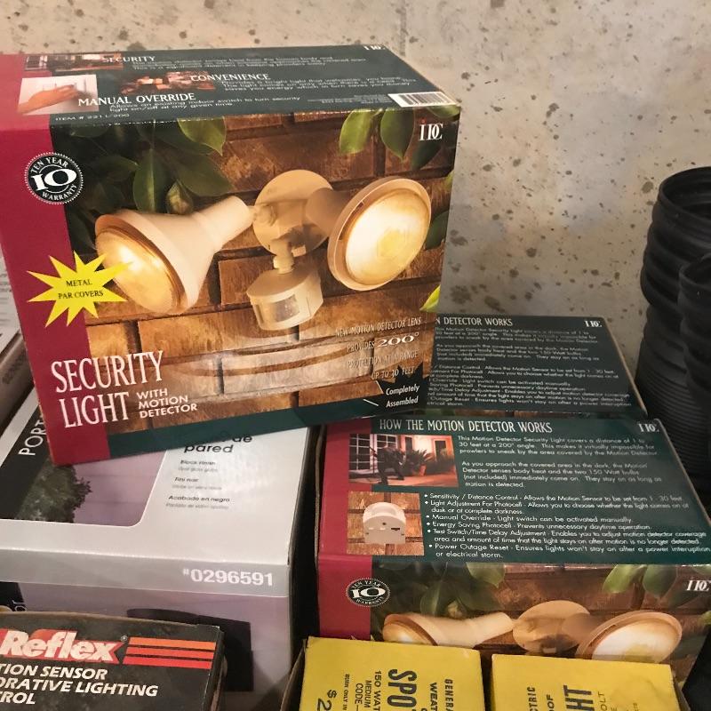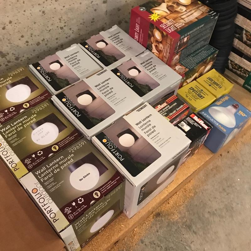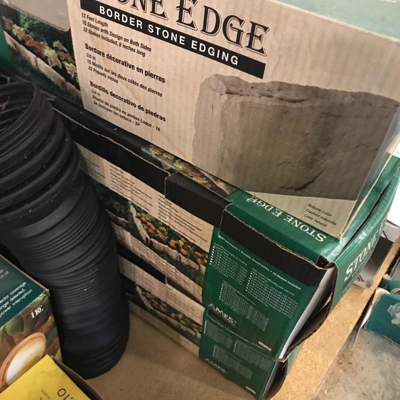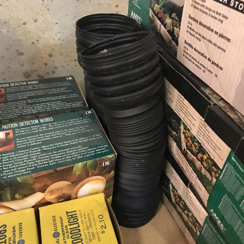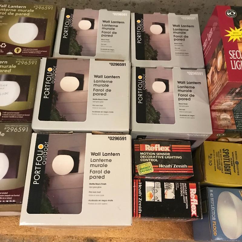 This large lot contains many essentials for your outdoor lighting and landscape needs including wall lanterns, lightbulbs, security lights, motions sensors, plastic drainage tubing, and plastic “stone” edging. See pics. Local pickup only.