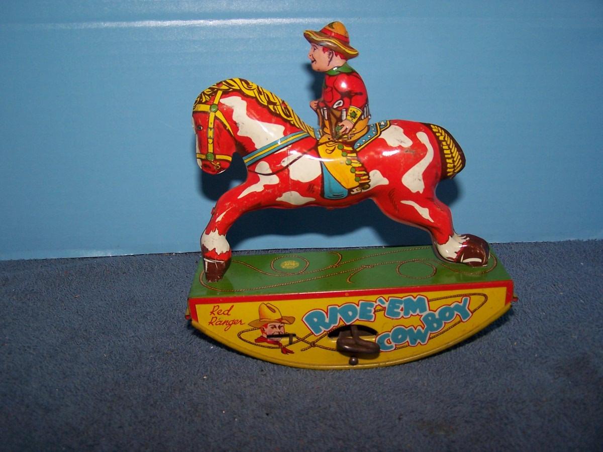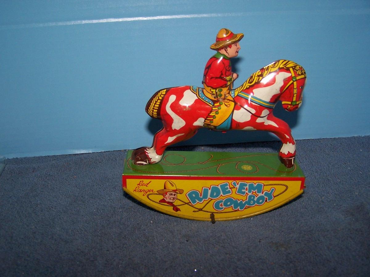LOT 185 FAB VINTAGE TIN LITHO TOY WYANDOTTE RED RANGER RIDE 'EM COWBOY WINDUP TOY