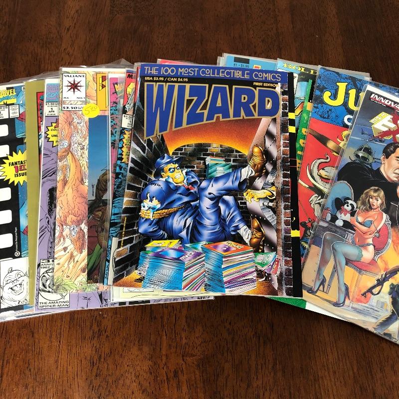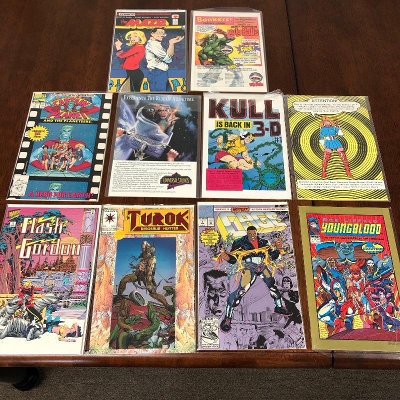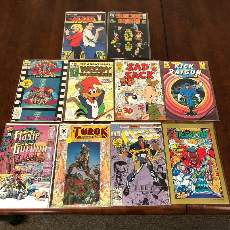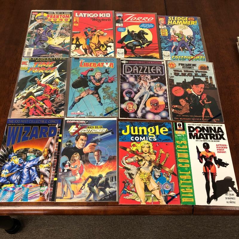 This lot contains all first Issues of a carries selection of comics to include Marvel's Dazzler, Phantom 2040, Zorro, Sledge Hammer, Cage, Flash Gordon, Captain Planet and more from ones like Valliant, A TE Comic, Reactor, PC, Drop Dragon and more. Also included s a Wizard book of the 100 most collectible Comics First Edition. These vary in dates from the 1980's and 1990s.