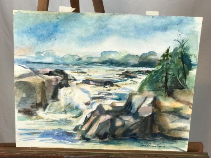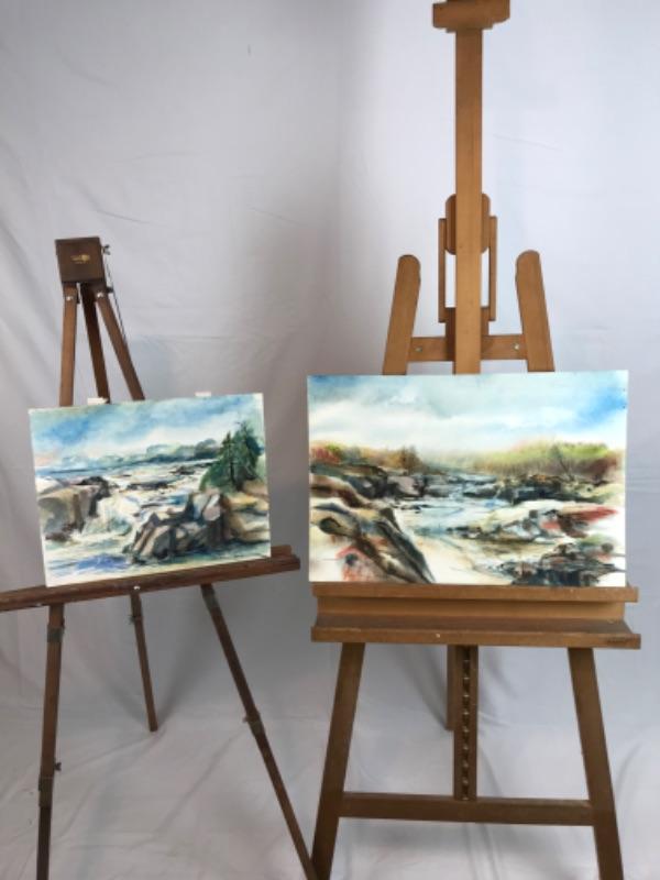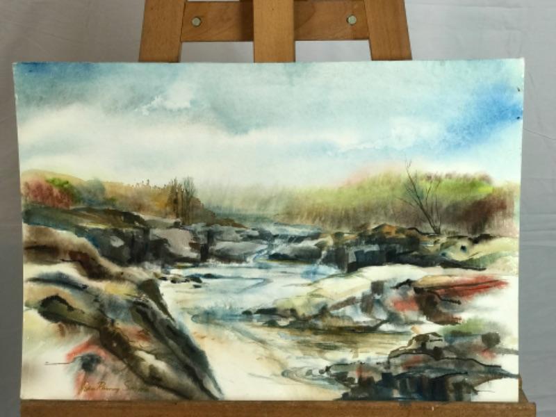 Pair of Jean Ranney Smith signed original watercolor paintings. “River Rocks” measures 22”x15” and “Small Waterfall “ measures 15”x12”