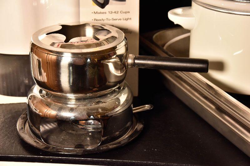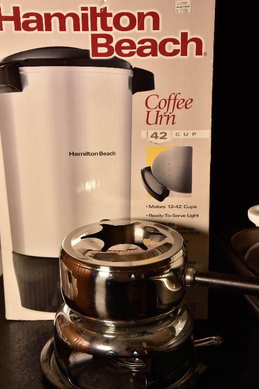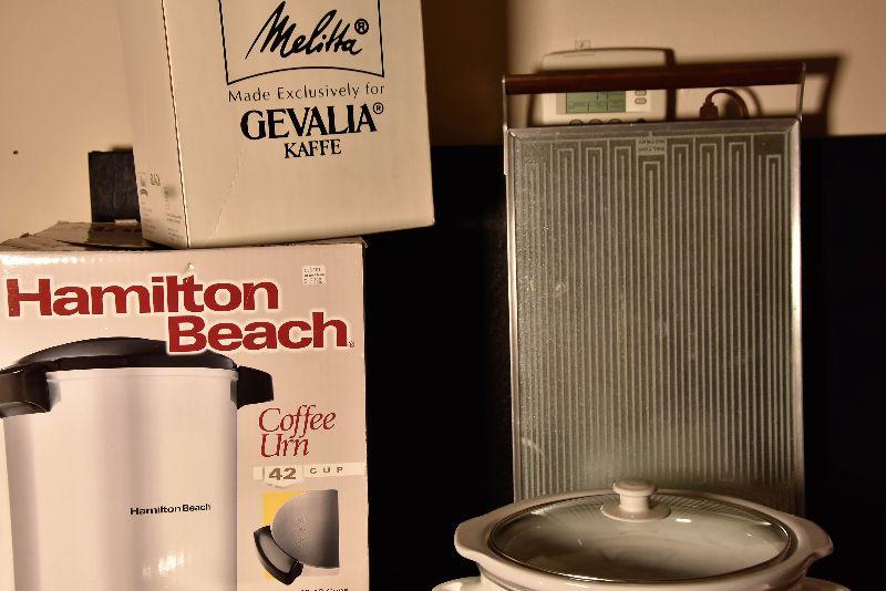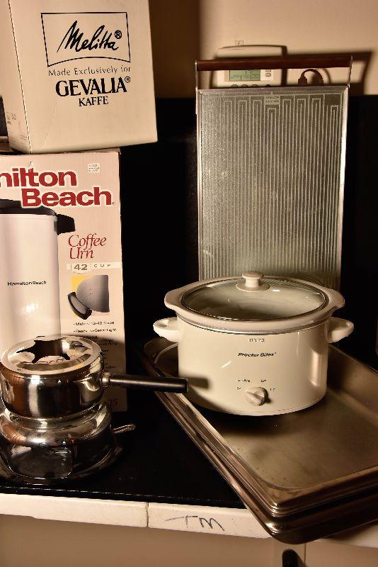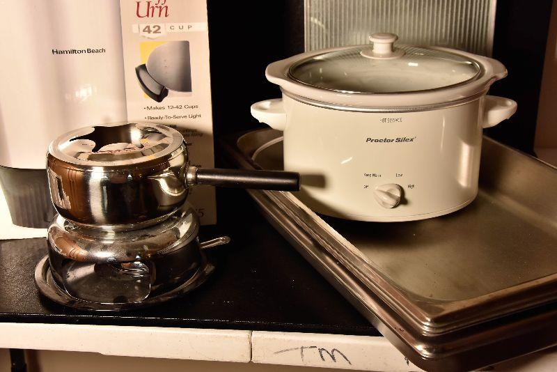 You're off to a great start with all of these to help you throw your next party. Chaffing dishes, crock pot, fondue, coffee urn, and electric hot plate.
