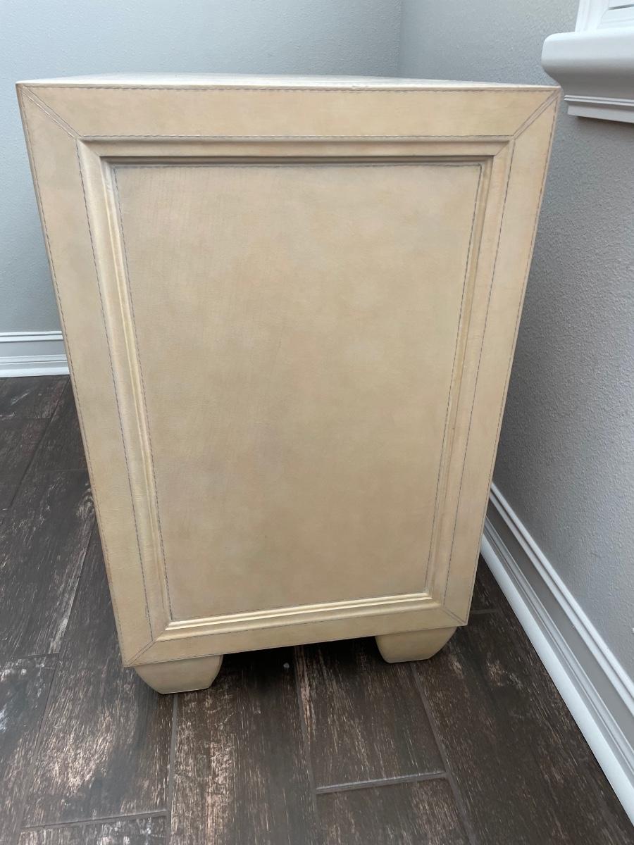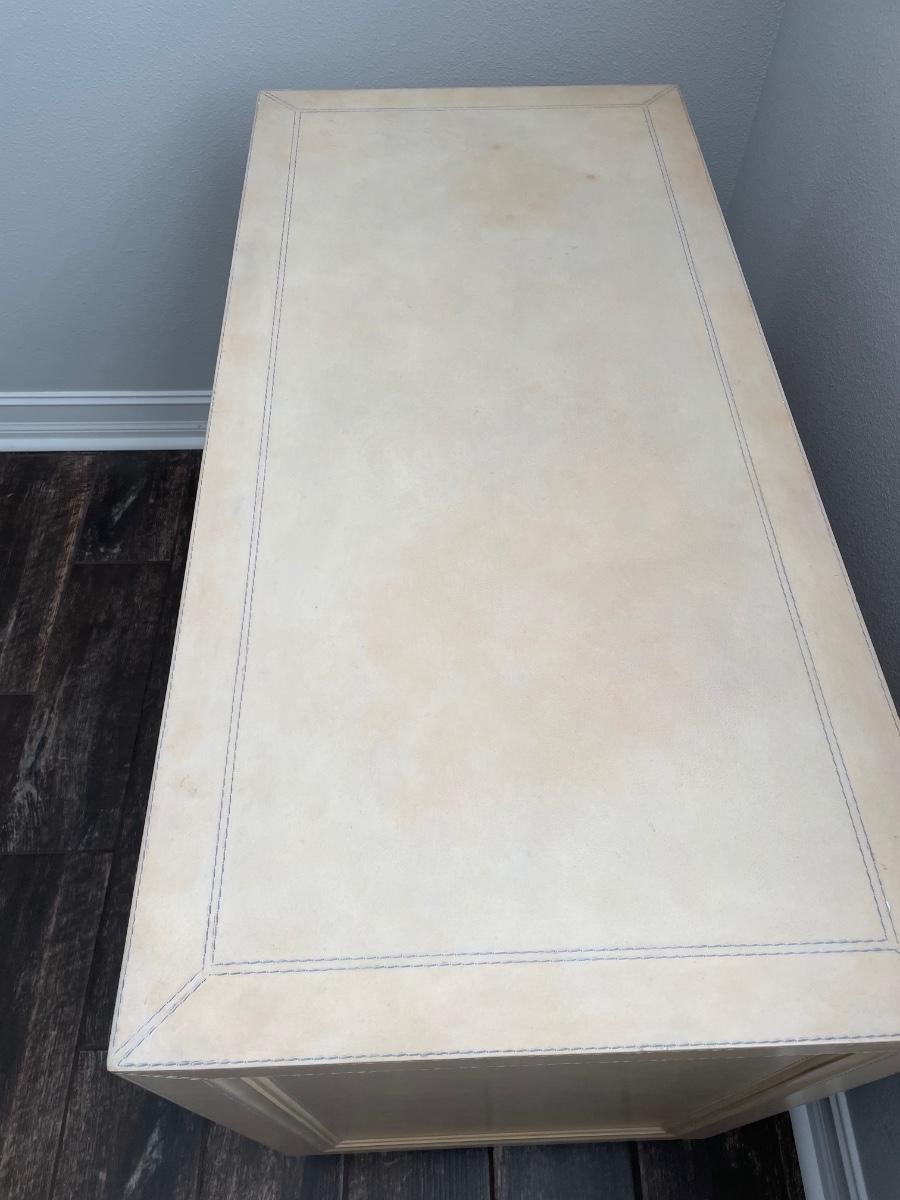 High quality and excellent condition. Measurements are in the photos. There is a small discolored area on the top, in the upper left corner--very faint. Otherwise it's in perfect condition.