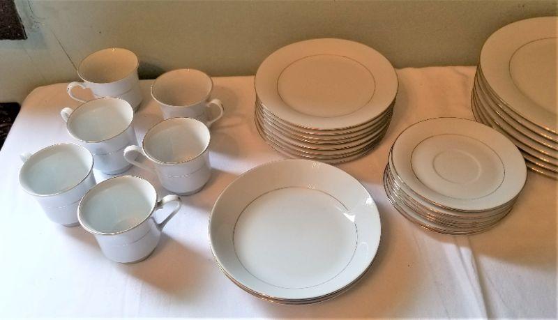 You get all you see here - 7 Dinner plates, 6 cups, 7 saucers, 2 soup bowls, 8 Salad plates. Sakura "Classic Gold" china, 1996. Good used condition.