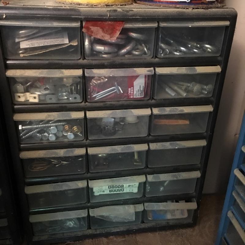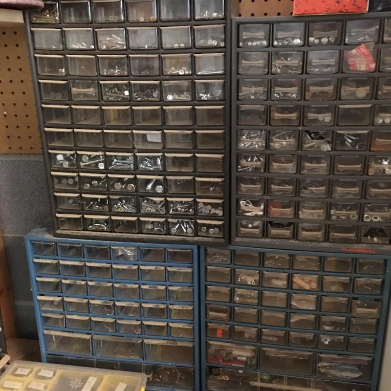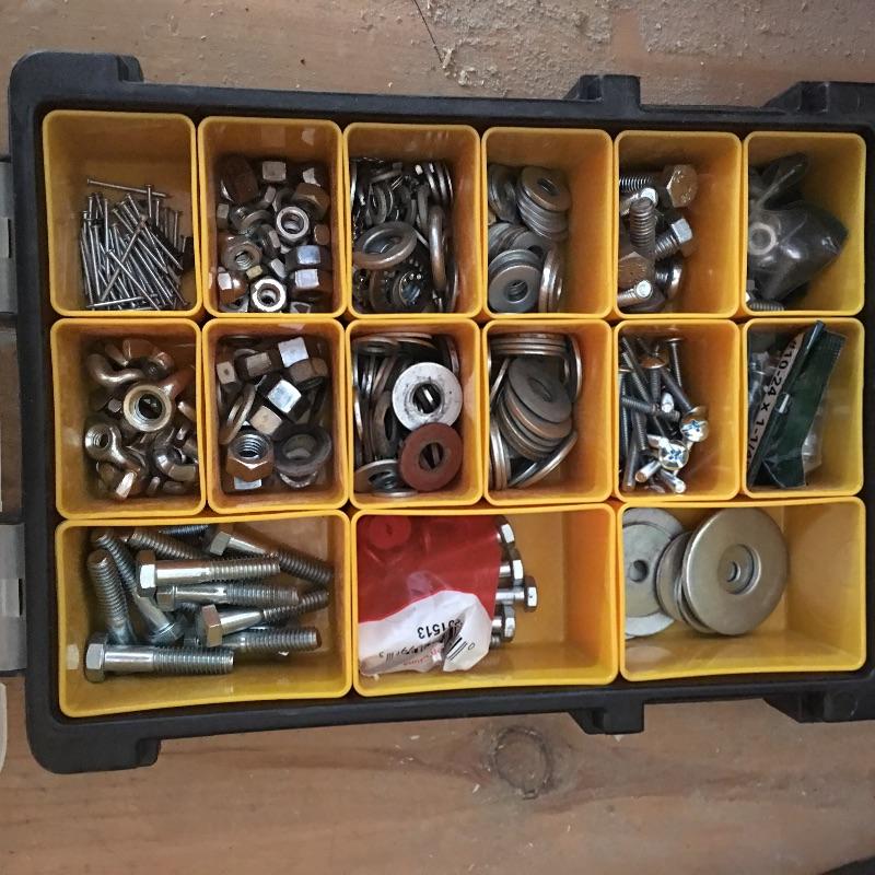 Boxes of screws nuts and bolts and more. Ten storage boxes with all the contents. If you get this lot you probably won’t need to got to the hardware store anytime soon.