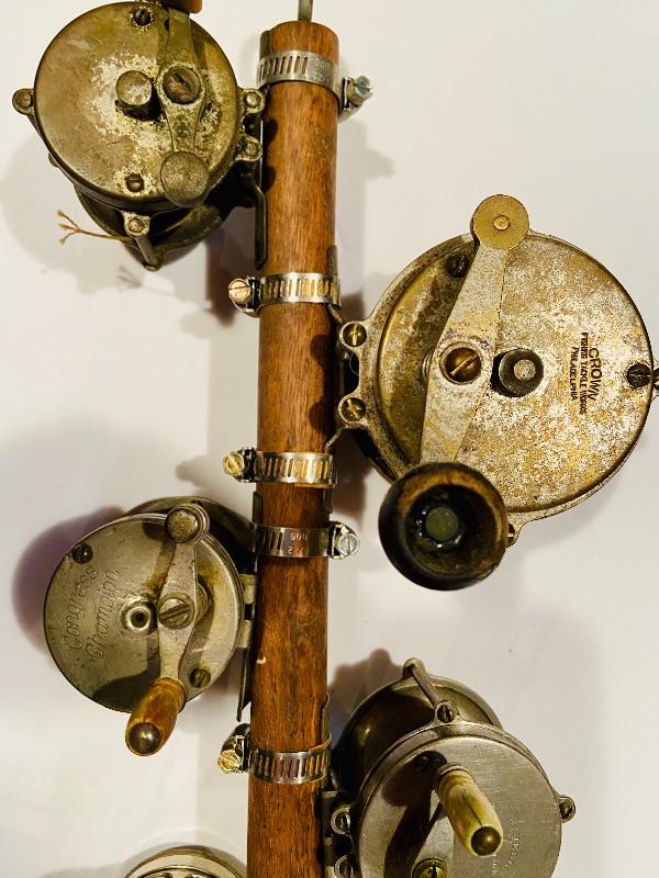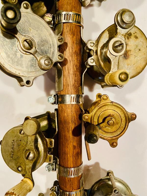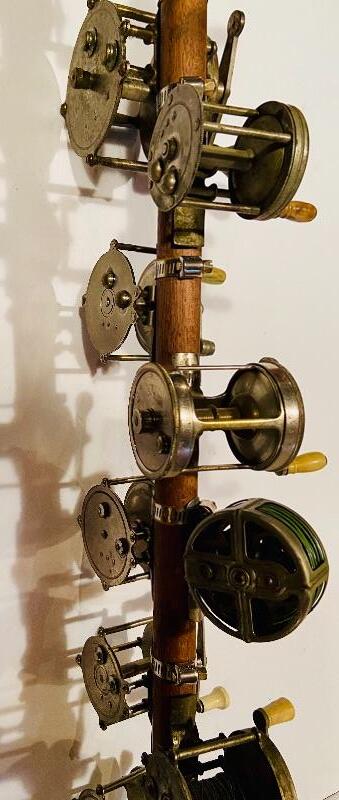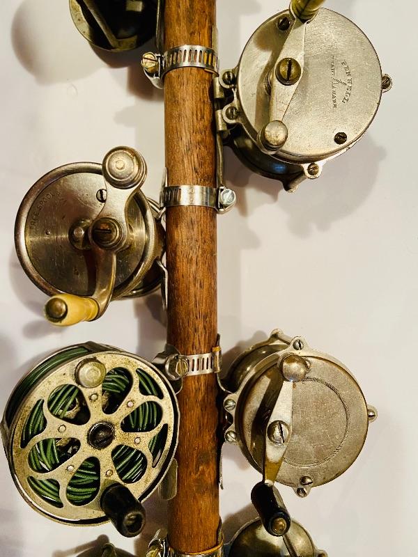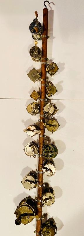 17 different vintage fishing rods including Congress Champion, Crown, Hendryx, Pennell and more. These were collected and mounted onto pole to hang as display. Great man-cave, beach, lake house art. These are all in different condition. Please see all pictures for content of the lot, condition of the lot, and measurements if taken. Pictures are the best representation of the items listed and items are untested unless indicated in description. Thank you for looking and have fun bidding!