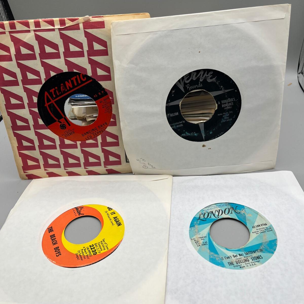 LOT 185B: Stack of 45s Vinyl (Dozens of Records) - Led Zeppelin, The Beach Boys, Rolling Stones and Much More