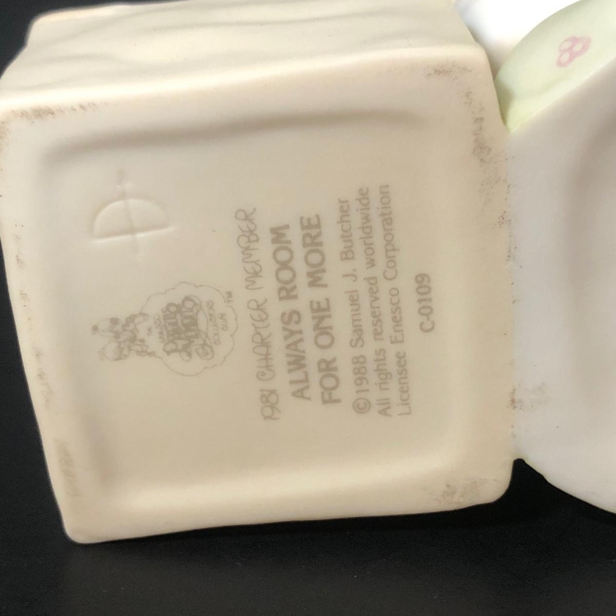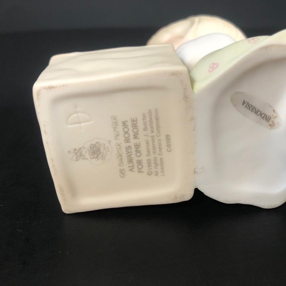 LOT 185D: Vintage Precious Moments - 1988 "Always Room for One More" (C-0109), 1983 Jonathan & David "I Get a Kick out of You" (E-2827), 1984 Coll. Club "The Lord is My Shepherd" (PM-851) & More