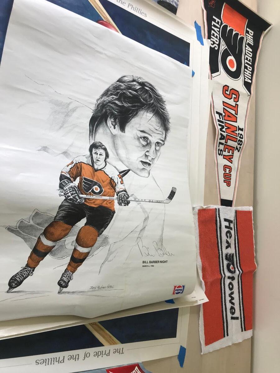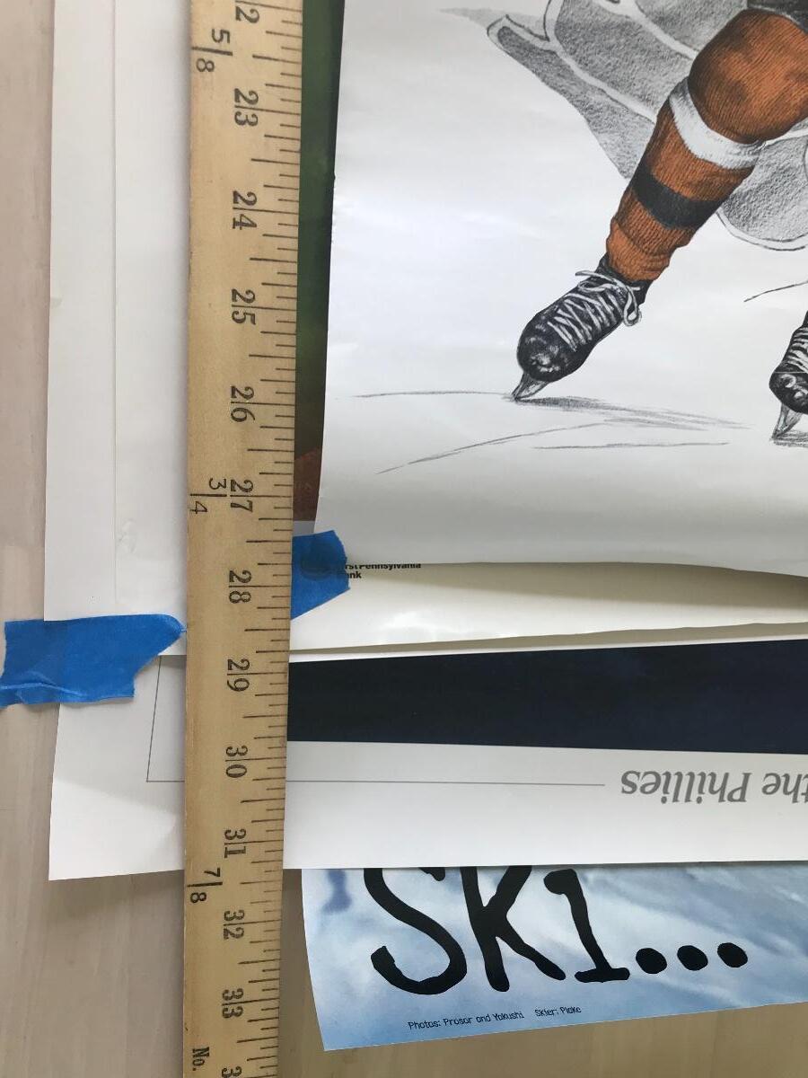 Philadelphia Flyers pennant from 1982, a Hex towel, and seven sports related posters. Please see all pictures for content of the lot, condition of the lot, and measurements if taken. Pictures are the best representation of the items listed and items are untested unless indicated in description. Thank you for looking and have fun bidding!