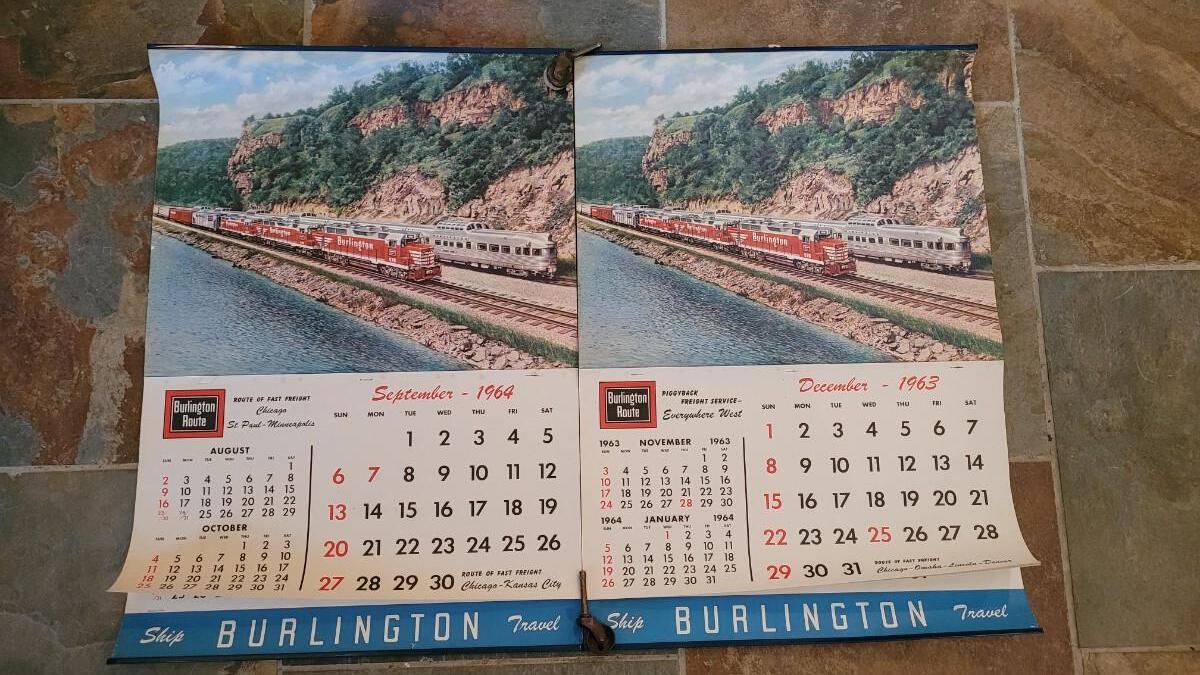 Lot 186: 1964 & 1965 Burlington Railroad Calendars  26" × 18"