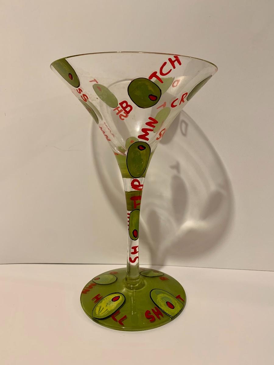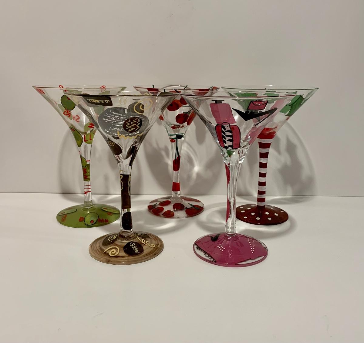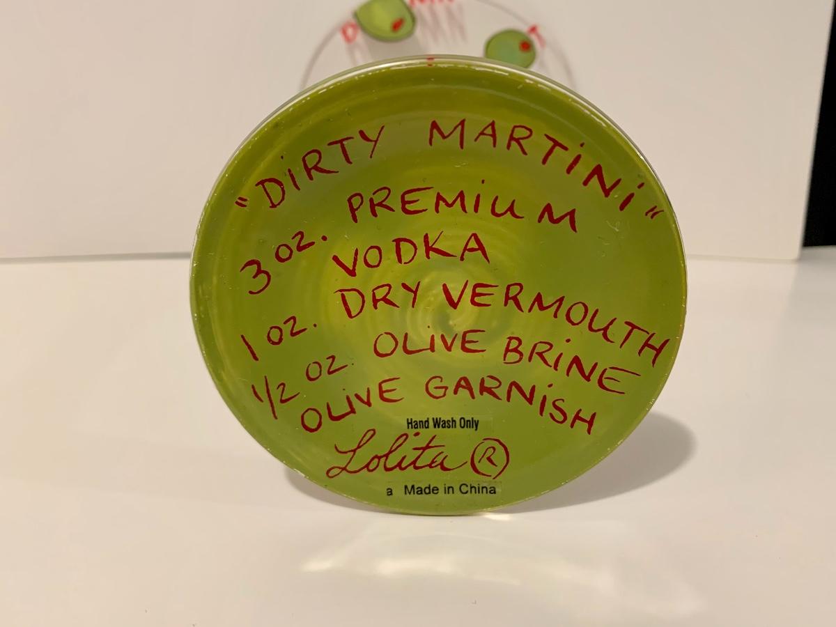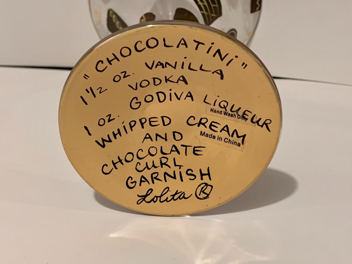 Set of 5 Lolita Stemware/Martini Glasses 4 with recipes on the bottom for the bartender in you.