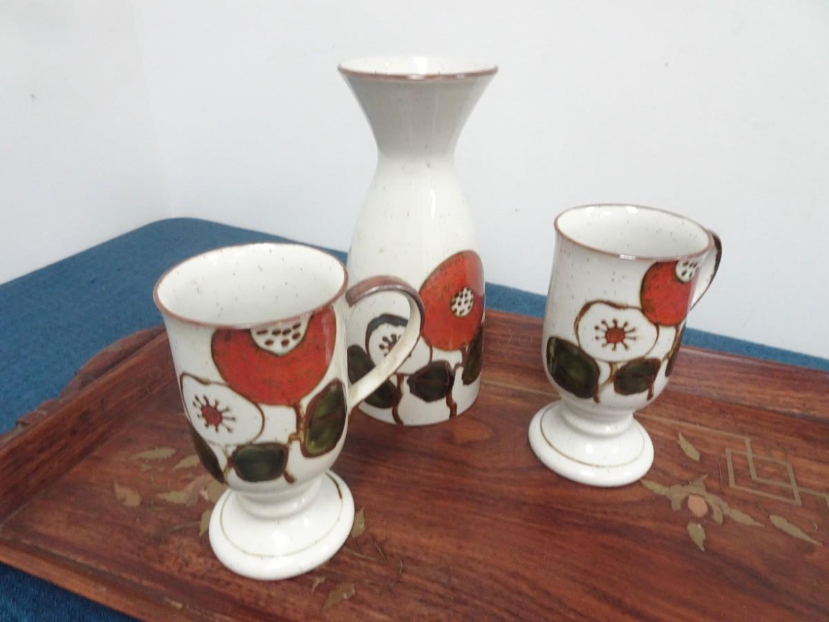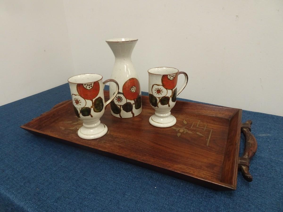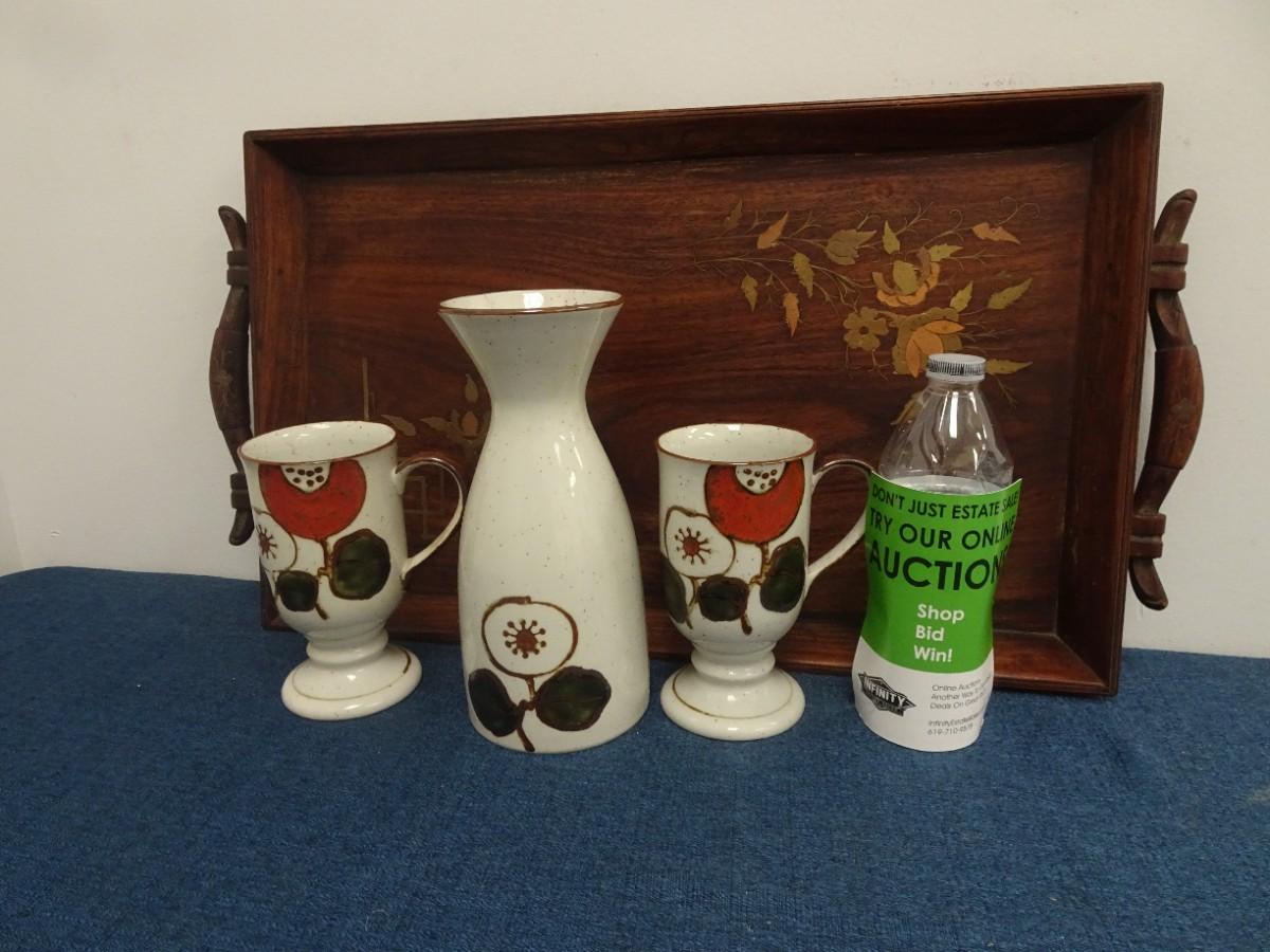 LOT 186 VINTAGE MUGS, AND WOOD TRAY