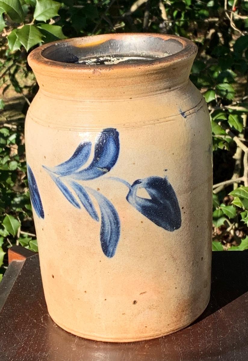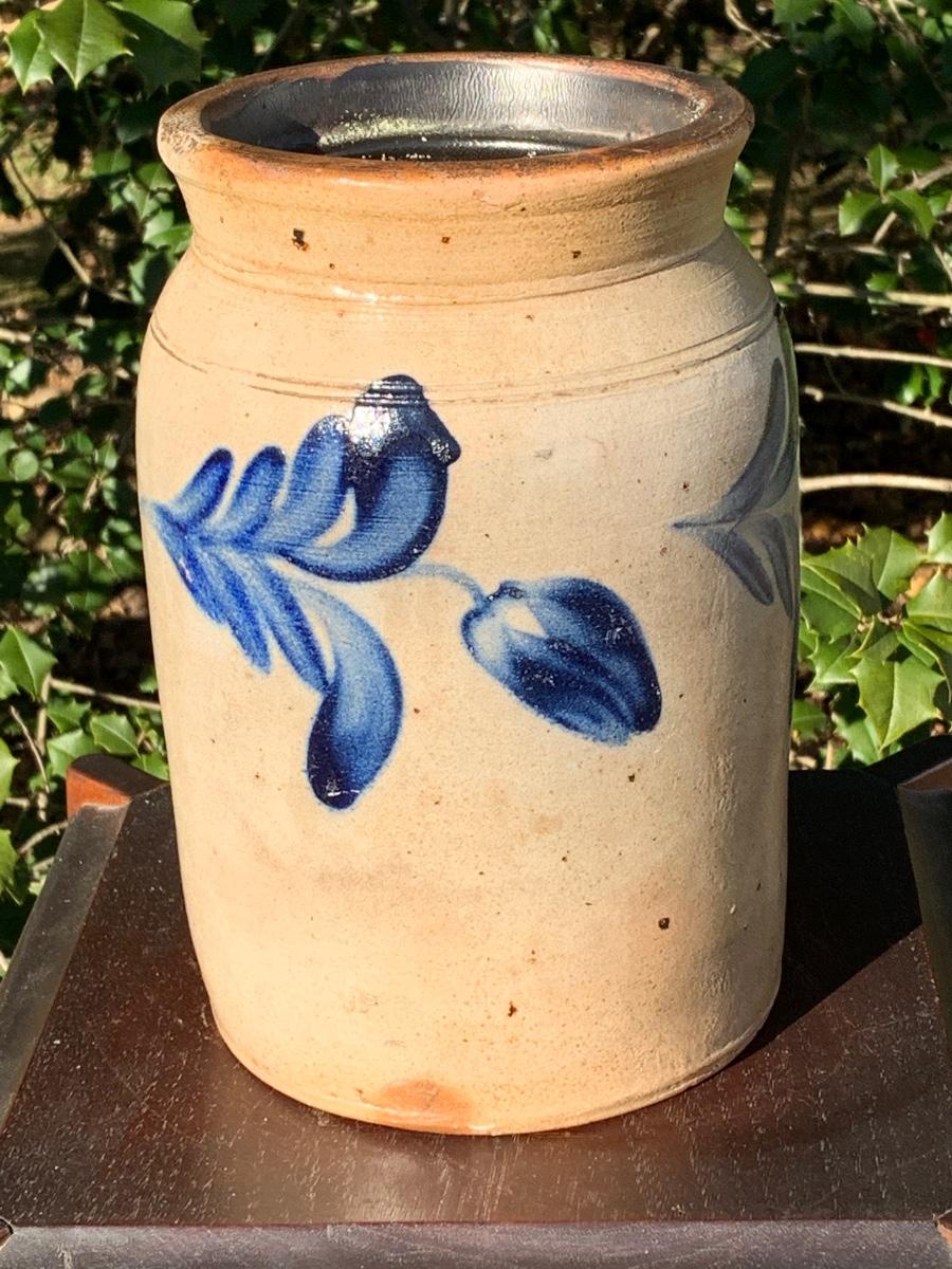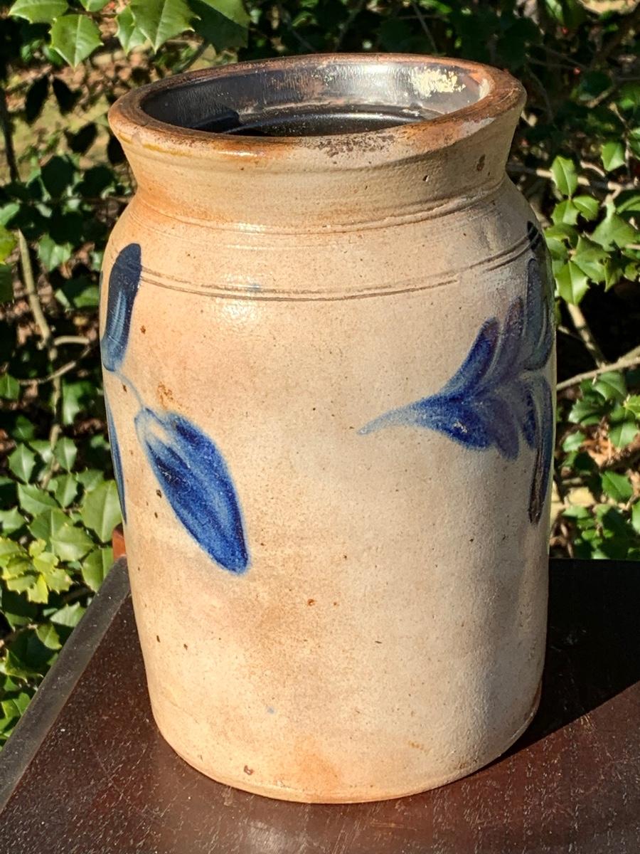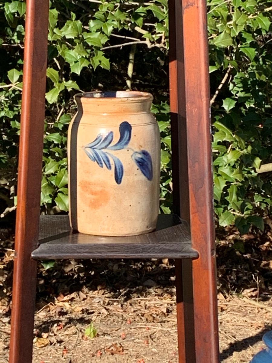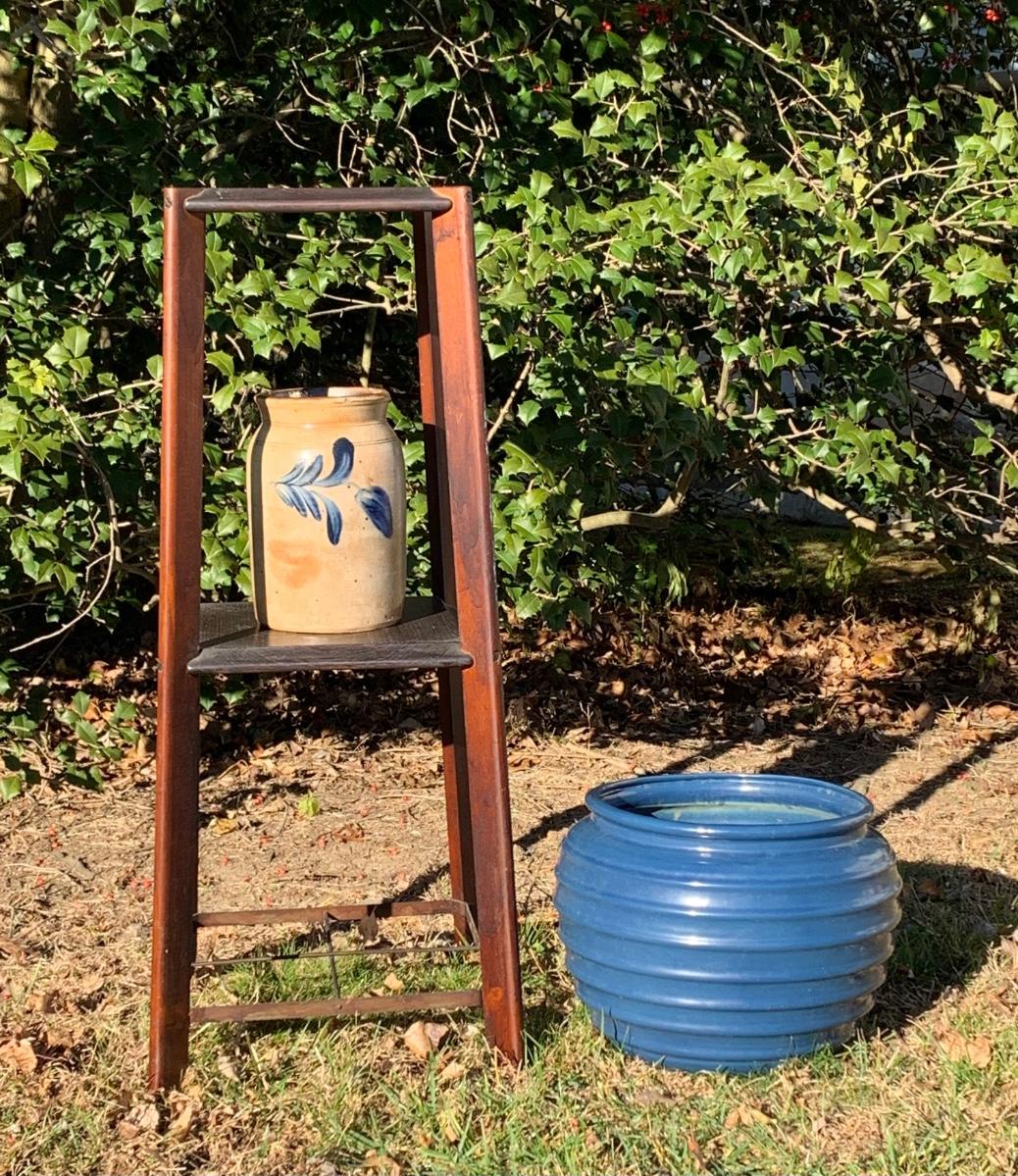 Lot 186: Unique Antique Wood Plant Stand, Planter & Stoneware Pottery