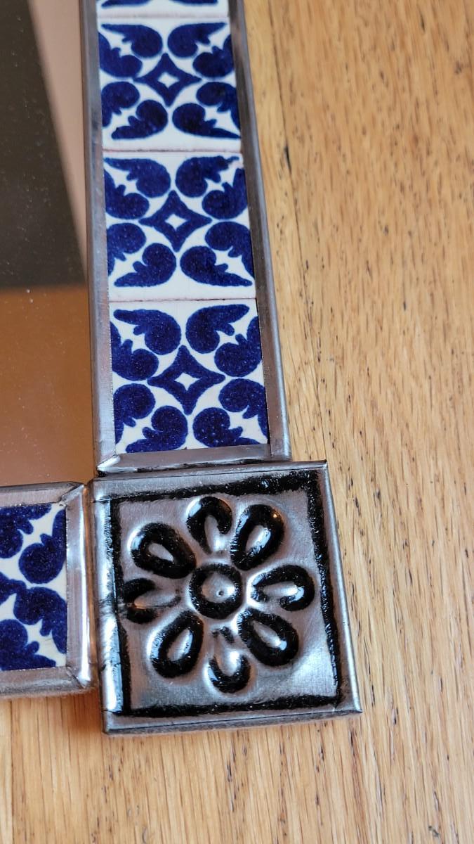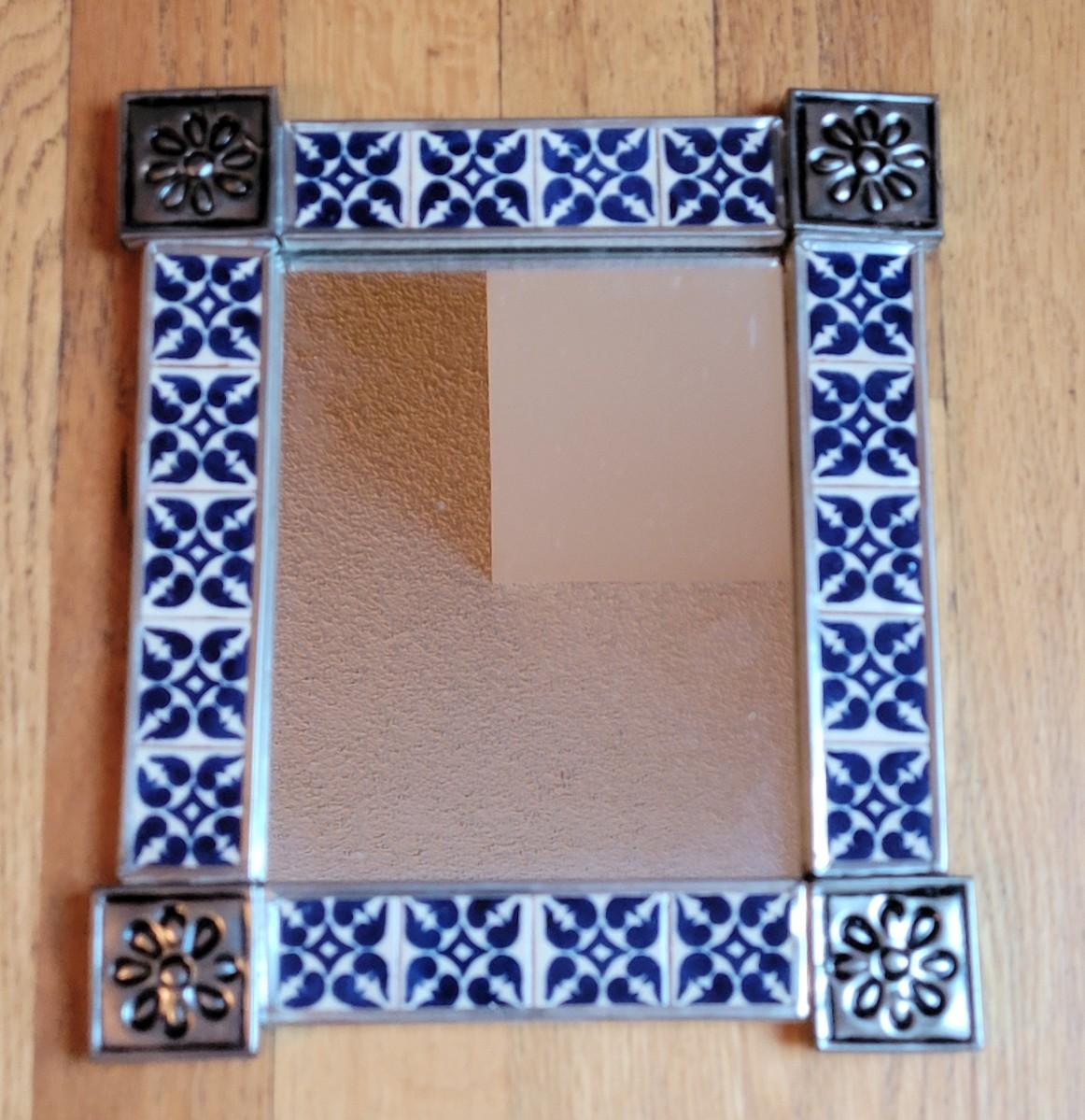 The colorful Talavera tiles inlaid in this Mexican tin mirror make it a bright and beautiful piece.