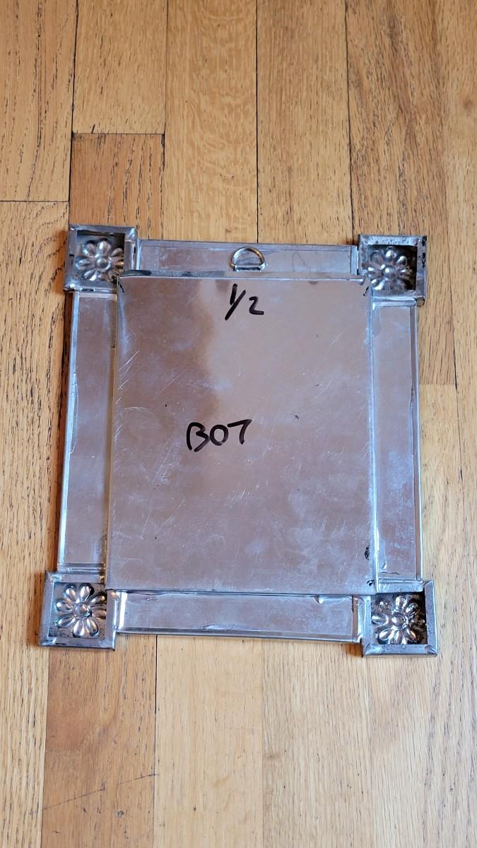 Lot 186: Mexican Folk Art Tile and Stamped Tin Mirror