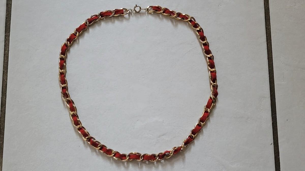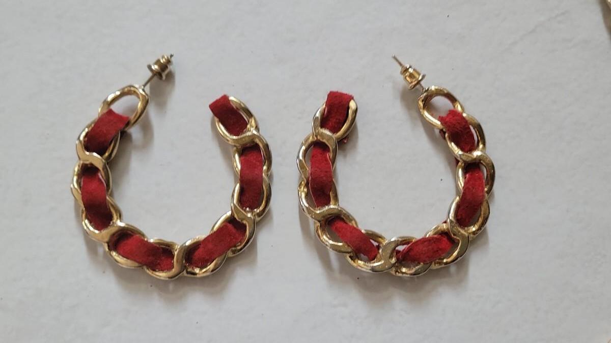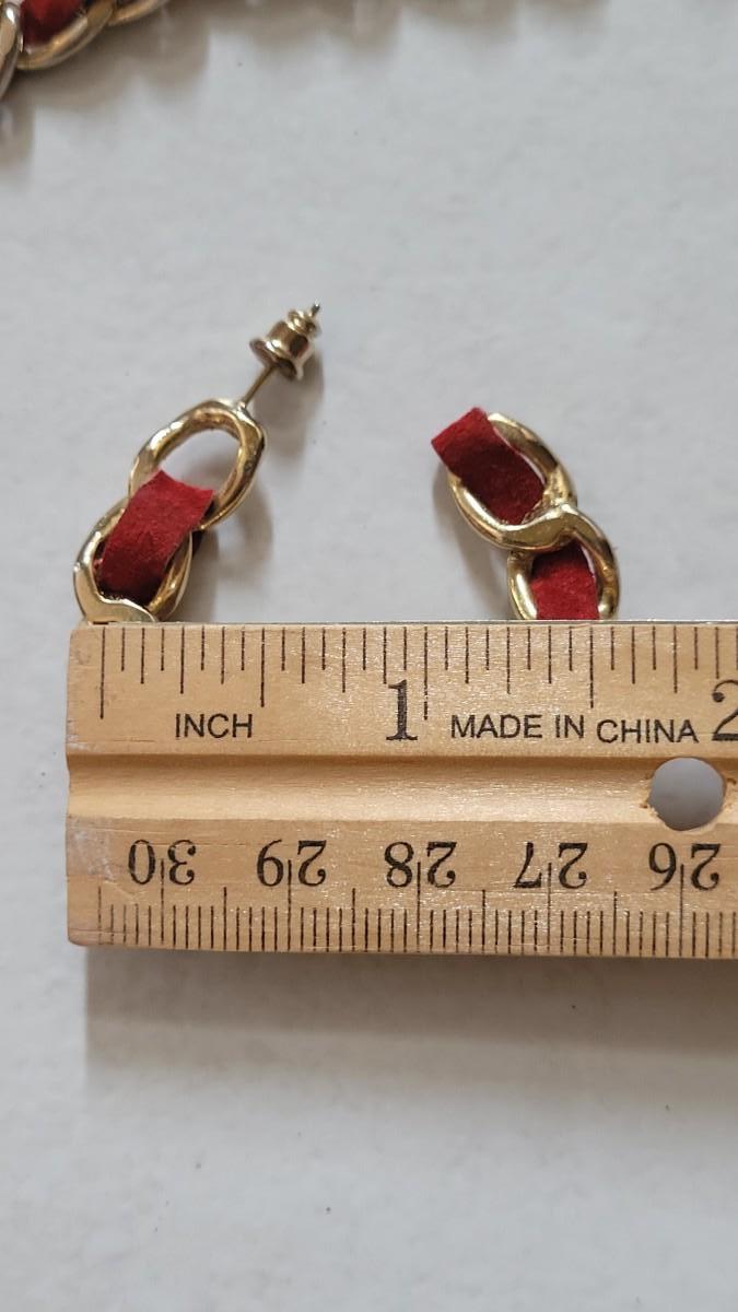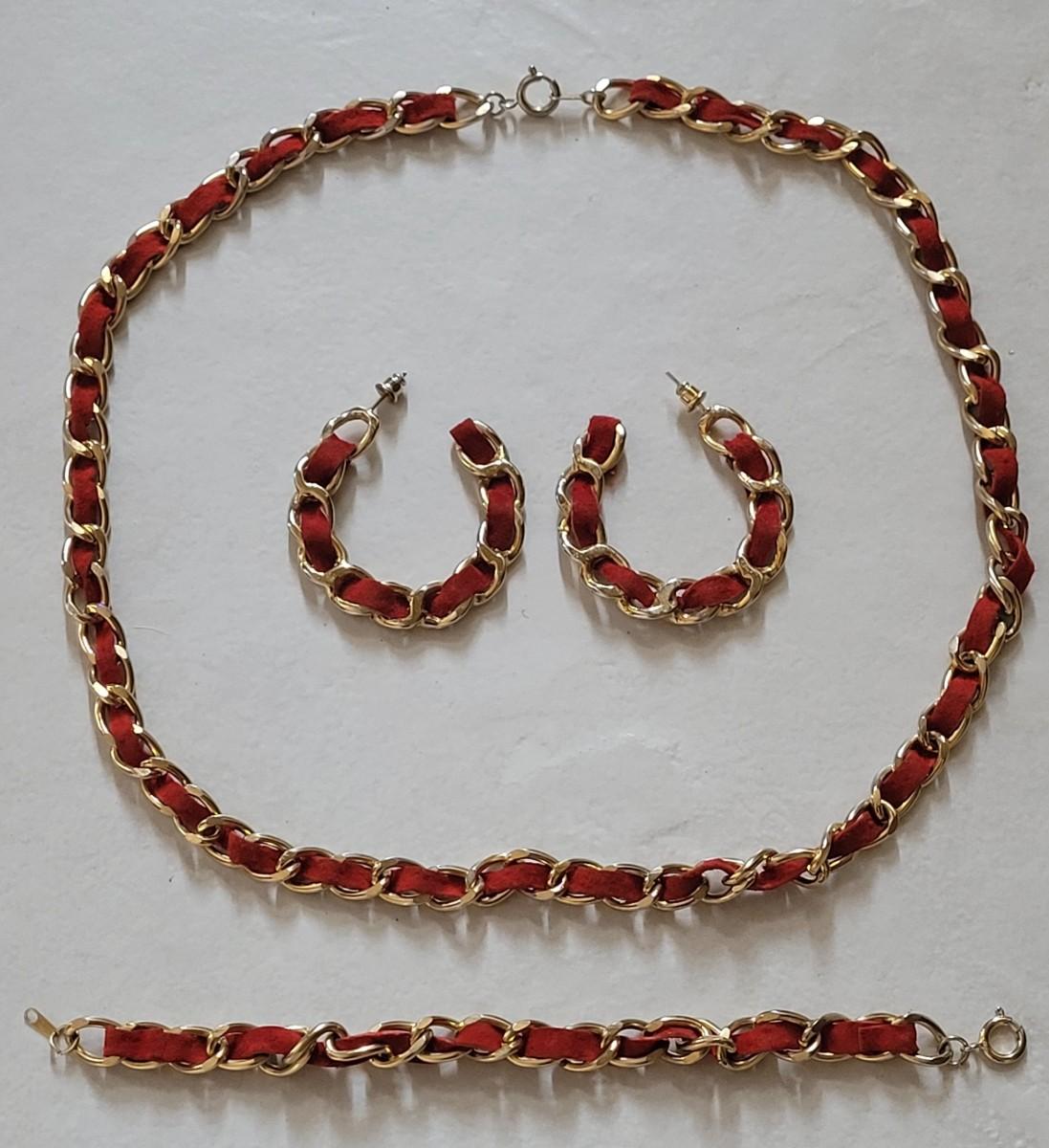 Lot 186: Vintage Red Leather & Gold Costume Jewelry Set