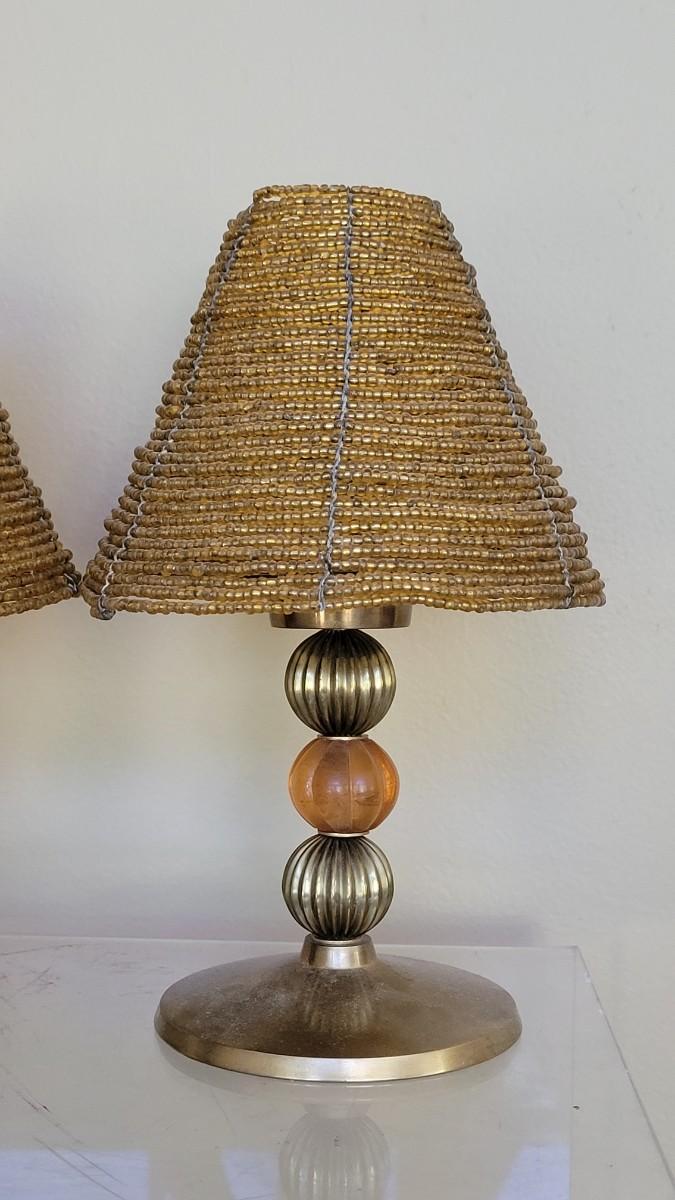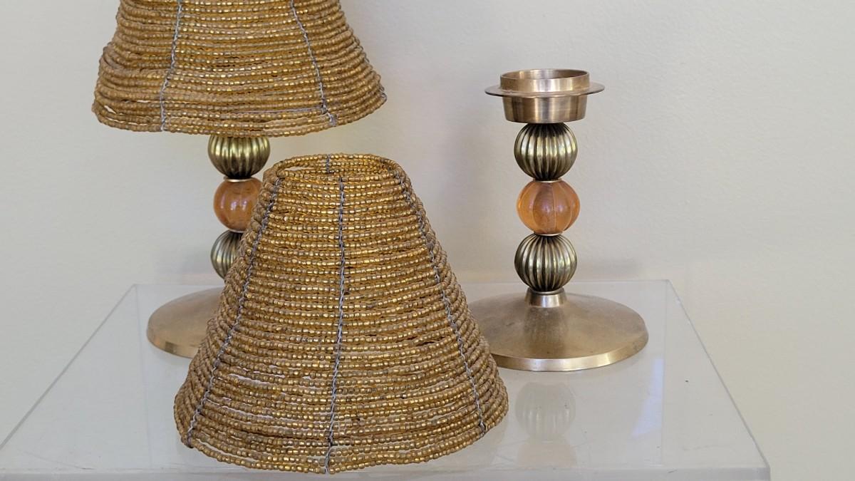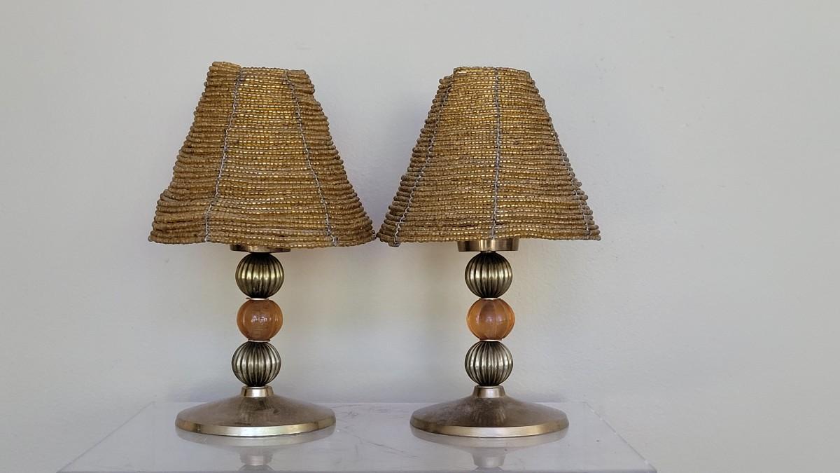 Lot 186: Set of Brass and Glass Bead Tea Light Lamps