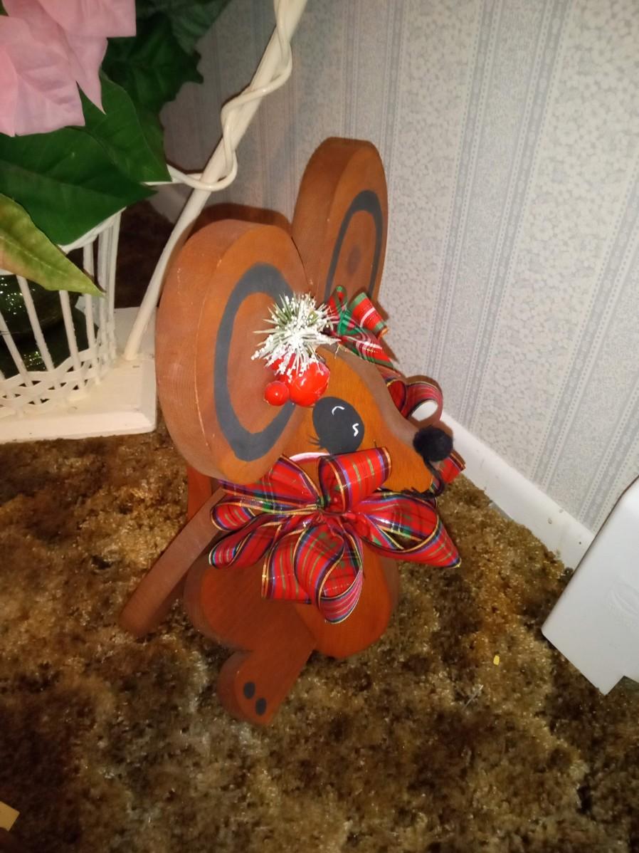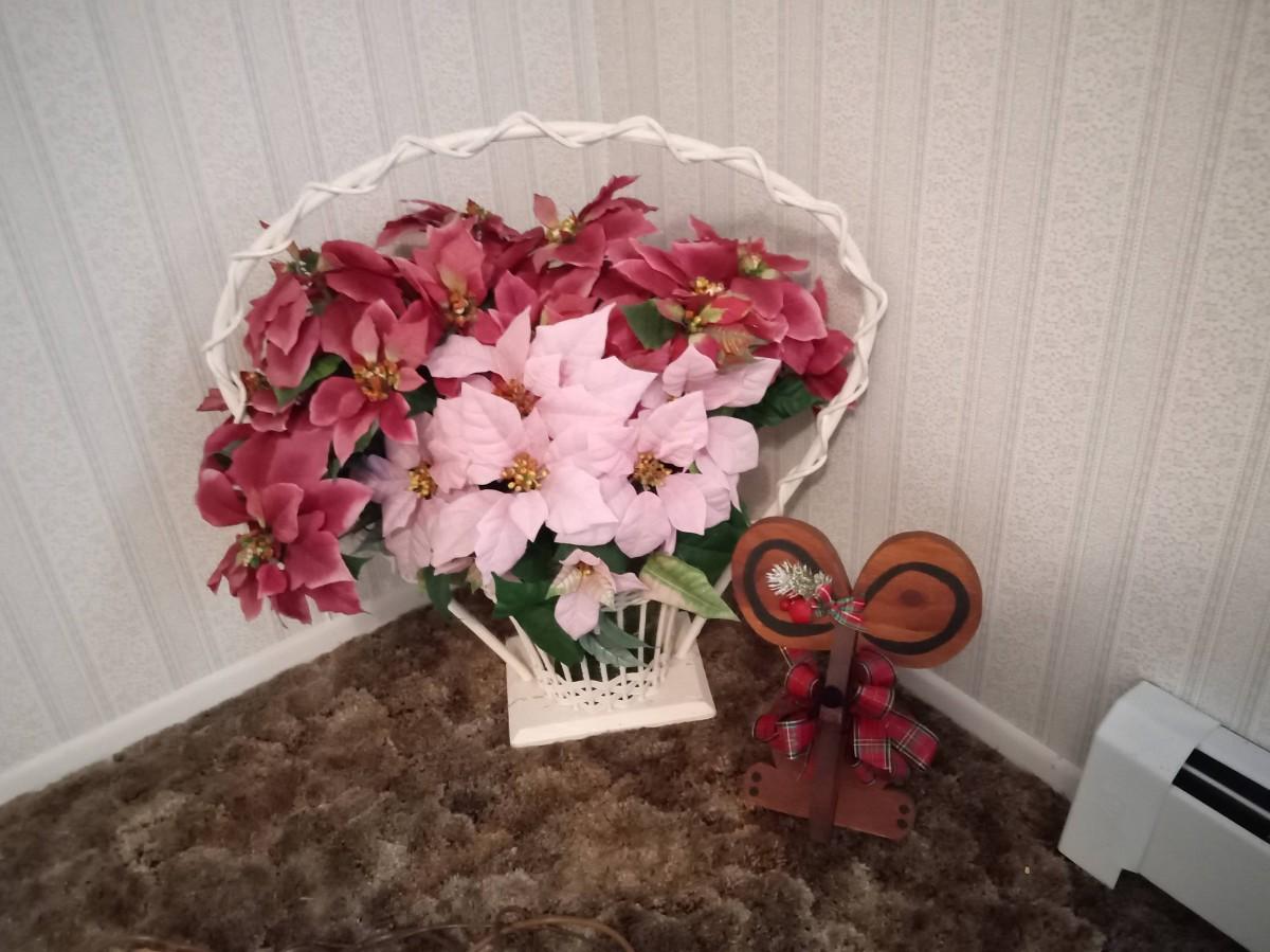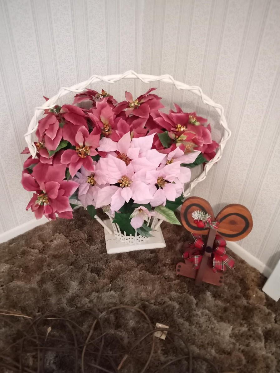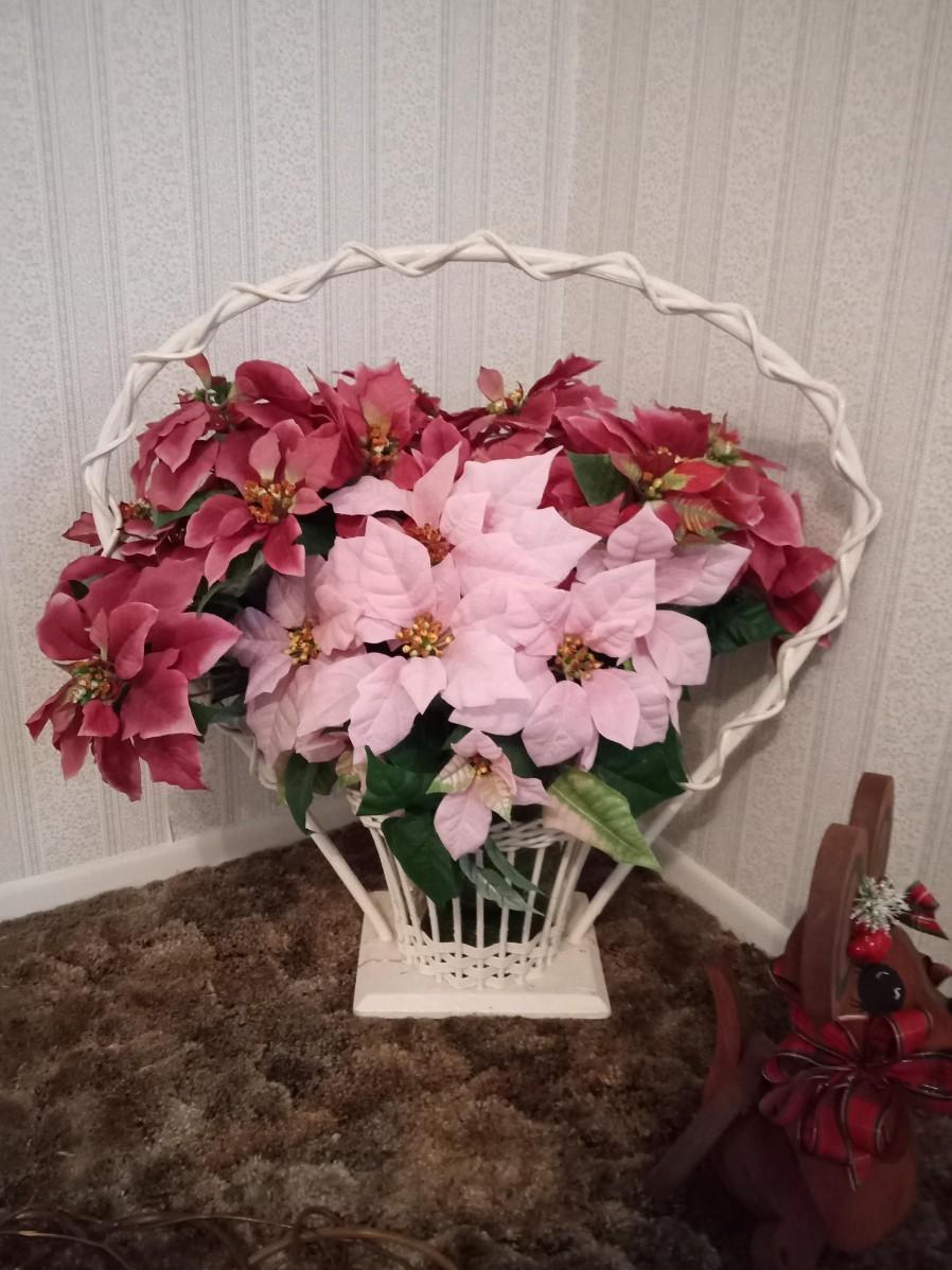LOT 186 LARGE BASKET FULL OF SILK FLOWERS AND A WOODEN MOUSE