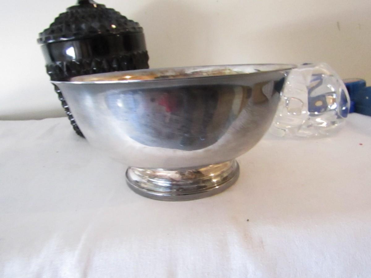 SILVER PLATED BOWL AND SMALL GLASS BOWL
