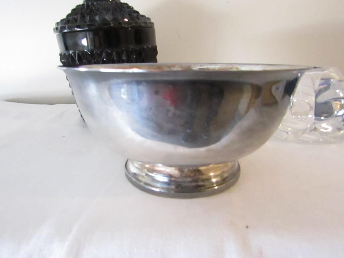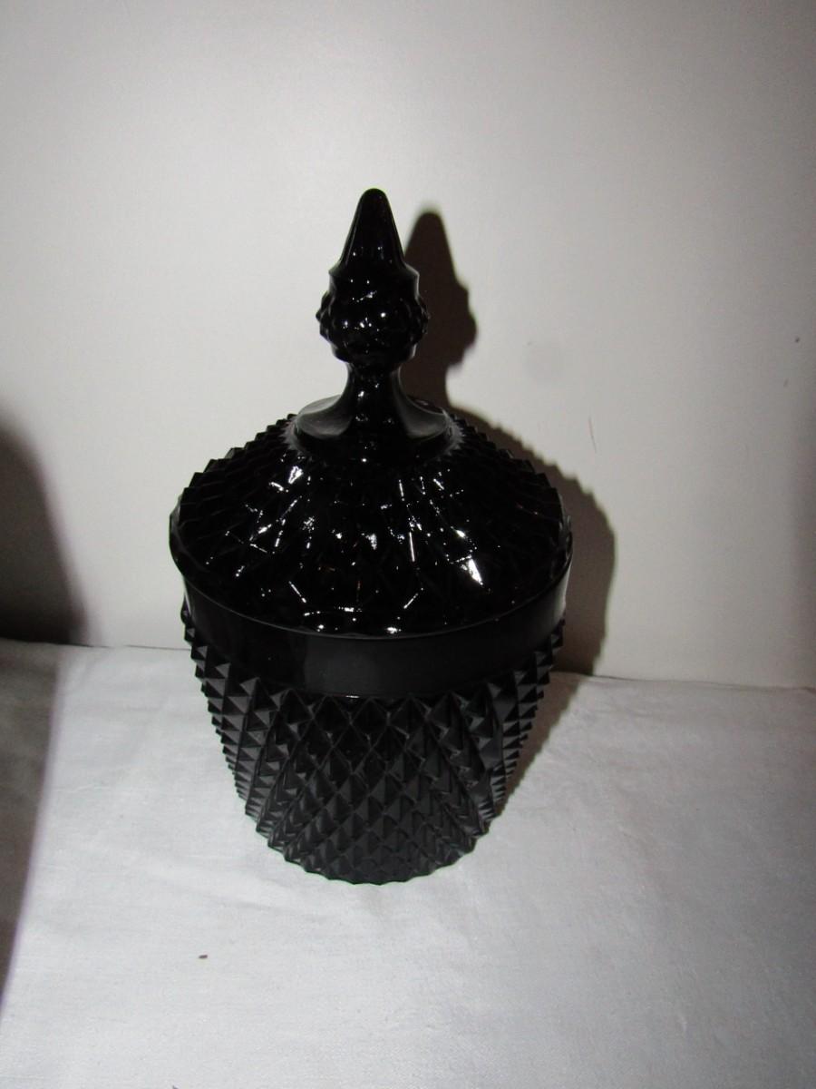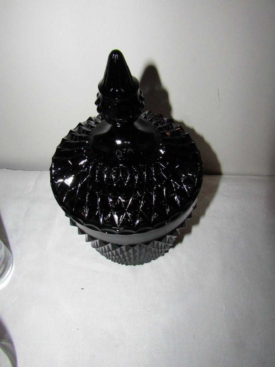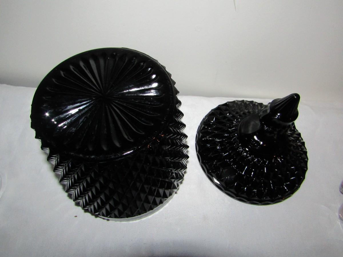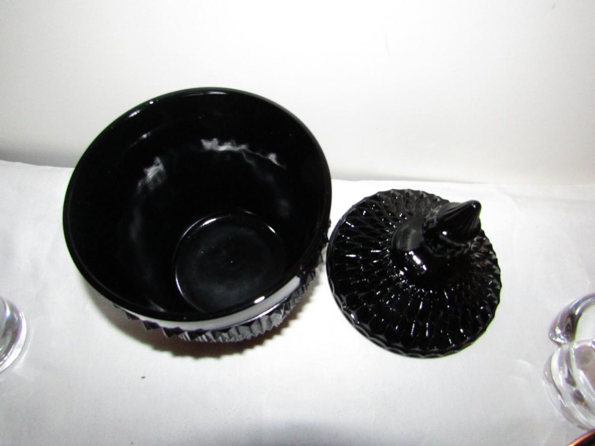 LOT 186 BLACK TIARA GLASS CANDY DISH AND MORE