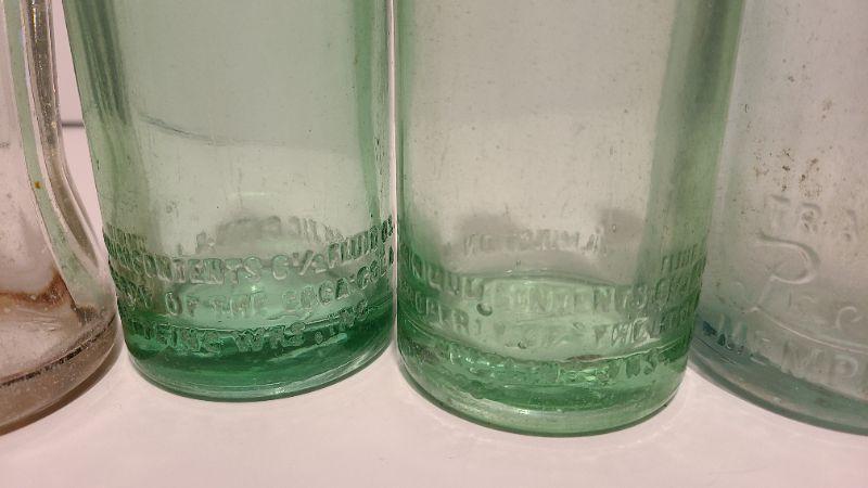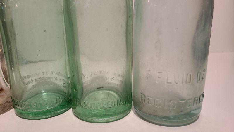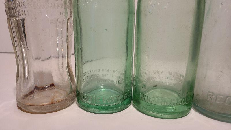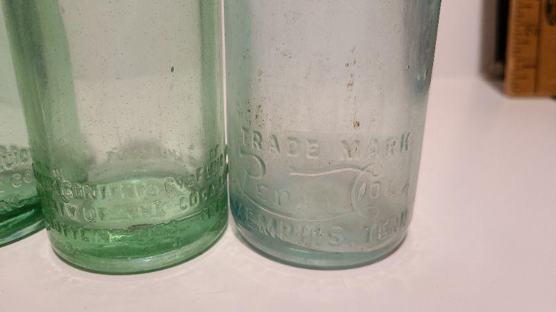 Antique Coca-Cola and Pepso Bottles: Coca-Cola (Atlantic City and Wilimingotn NC), Peps--pale blue (Memphis Tenn). CLS Each lot is unique and you will need to see all pictures. Pictures have been taken from all side to see condition and markings. What you see in the pictures is the actual content of the lot and the pictures are the best representation of the bottles. All bottles are sold-is according to the pictures. For further information please google the makers marks for age.